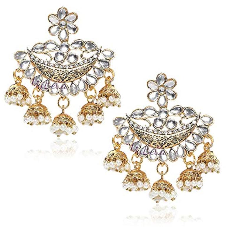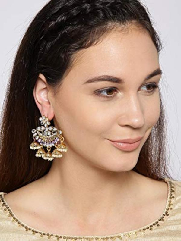 Add a touch of elegance to your traditional attire with these stunning pearl jhumka earrings.