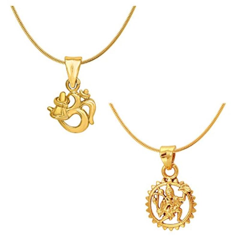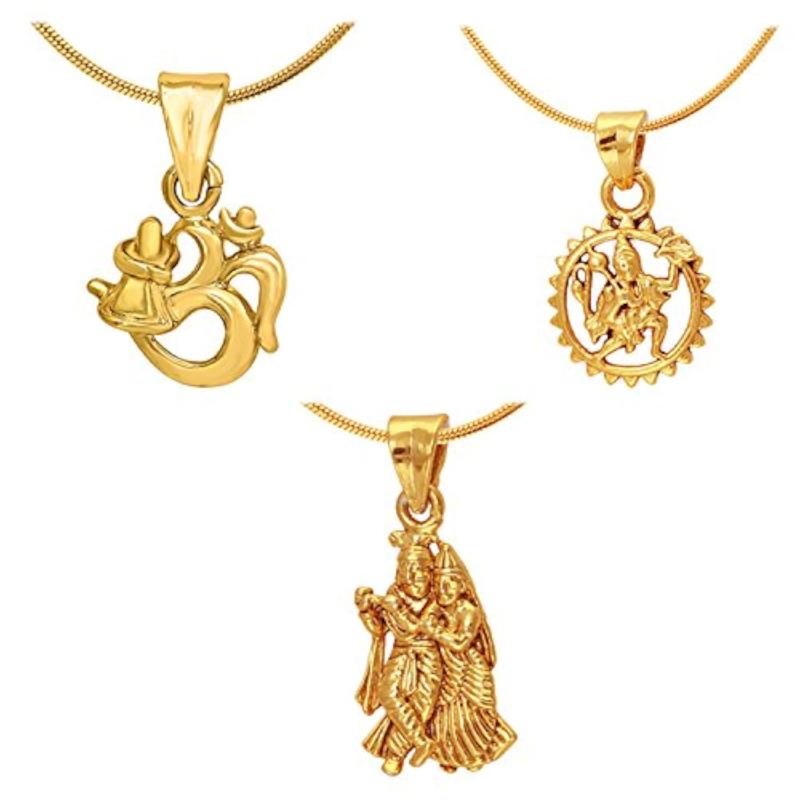 This combo includes three beautifully plated pendants featuring Radha-Krishna, Hanuman, and Shiva.