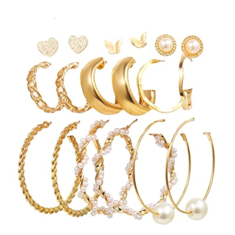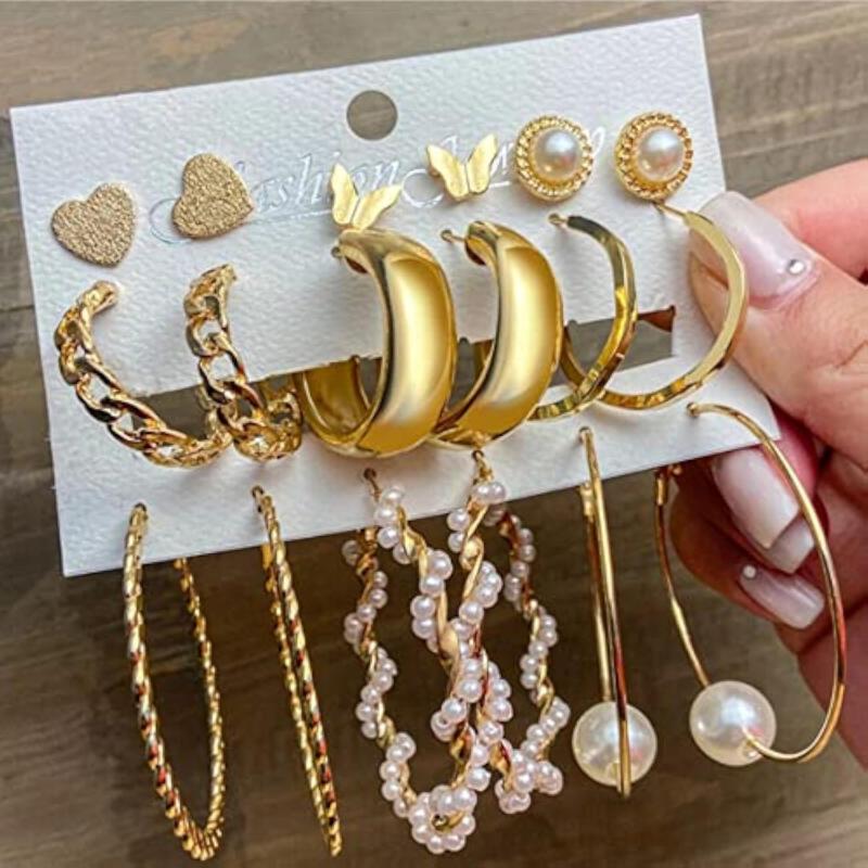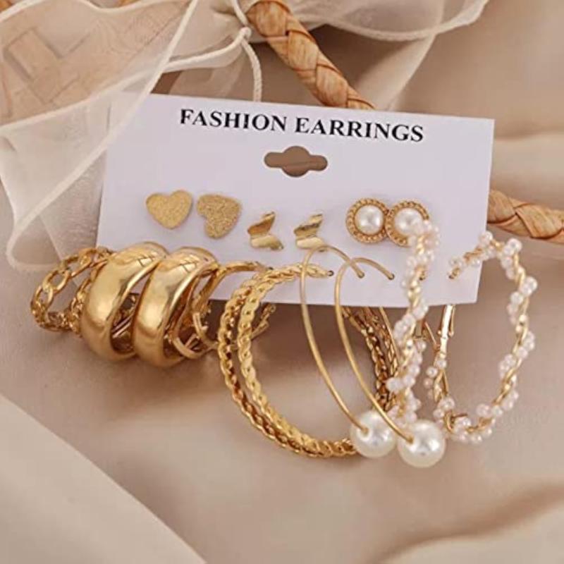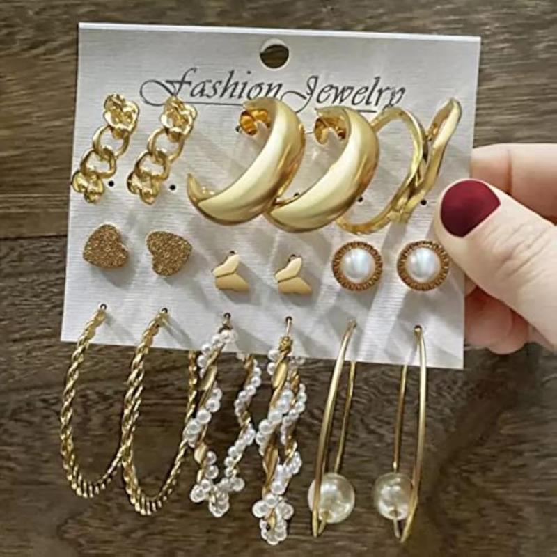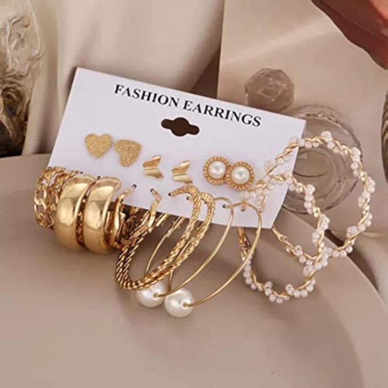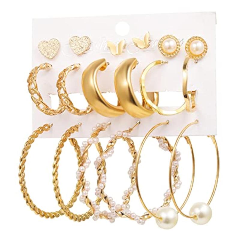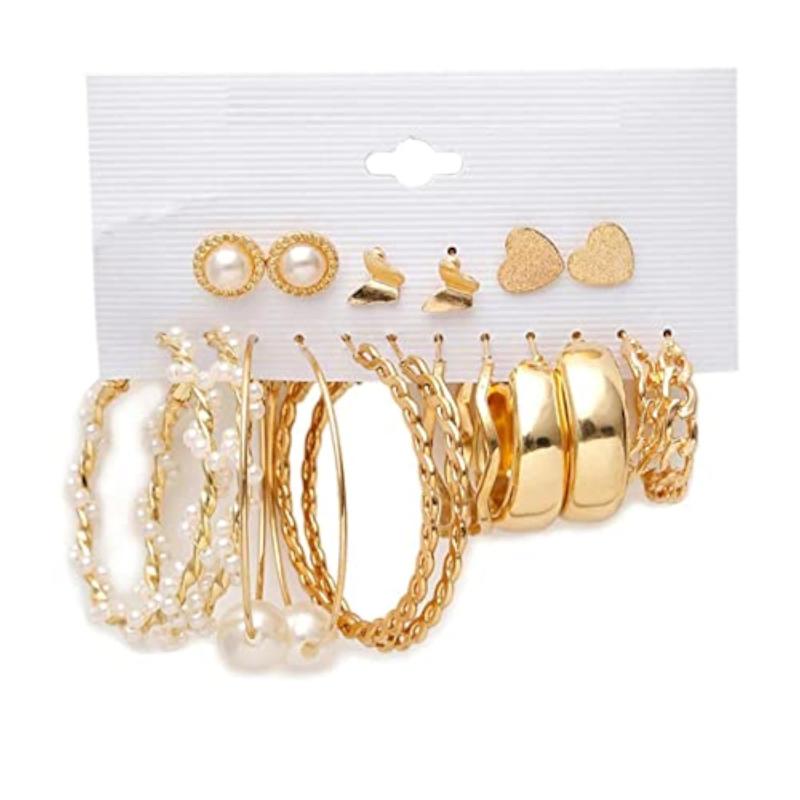 Upgrade your jewellery collection with this contemporary set featuring 9 pairs of earrings. Mix and match the stylish studs and hoops to elevate your daily look.