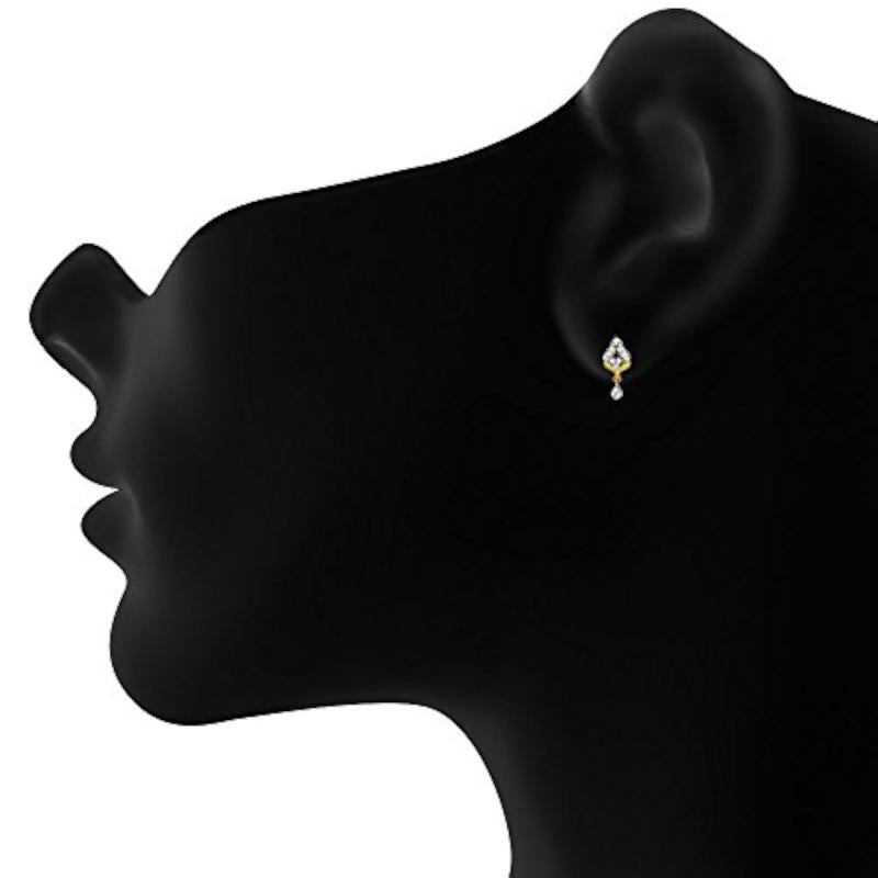 Elegant and glamorous earrings featuring CZ stones in a plated setting.