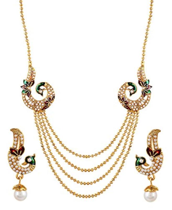 Elegant jewellery set perfect for weddings, featuring a plated necklace and matching earrings.