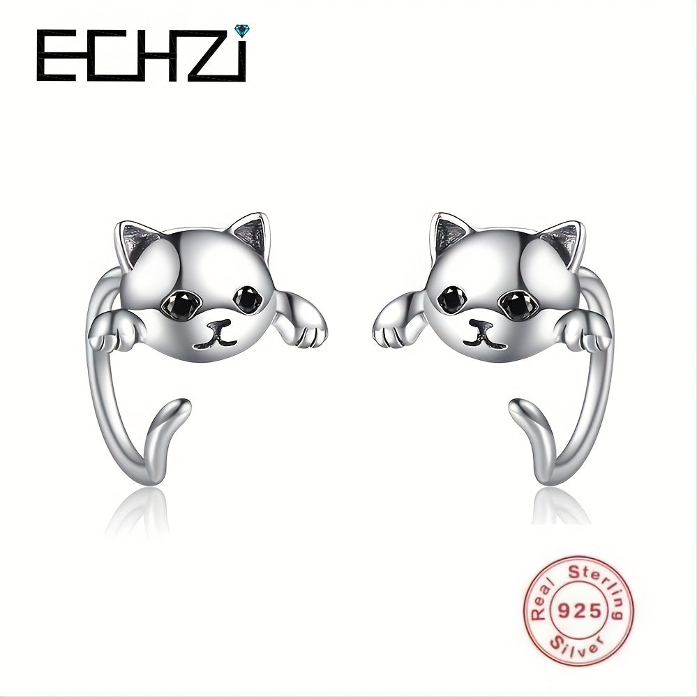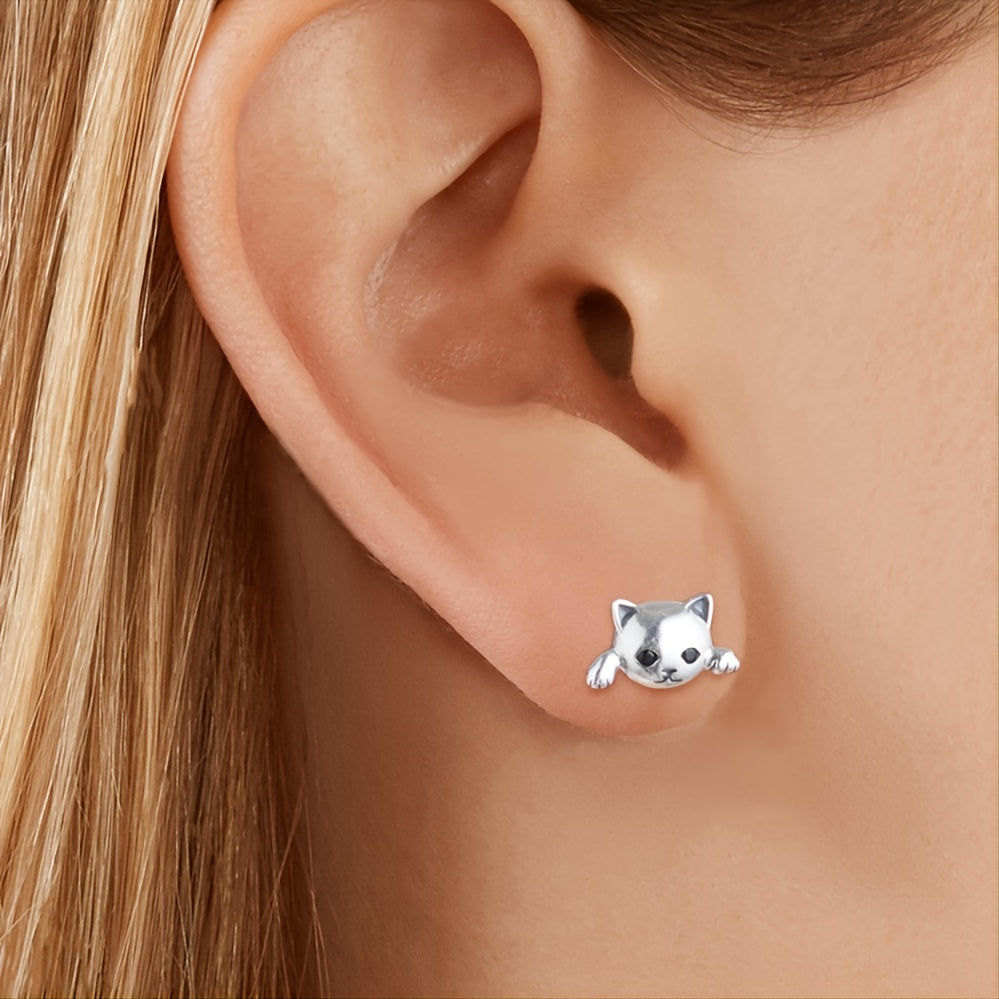 Adorable cat earrings made from hypoallergenic sterling silver with half huggie design. Features sparkling cubic zirconia for a touch of elegance.