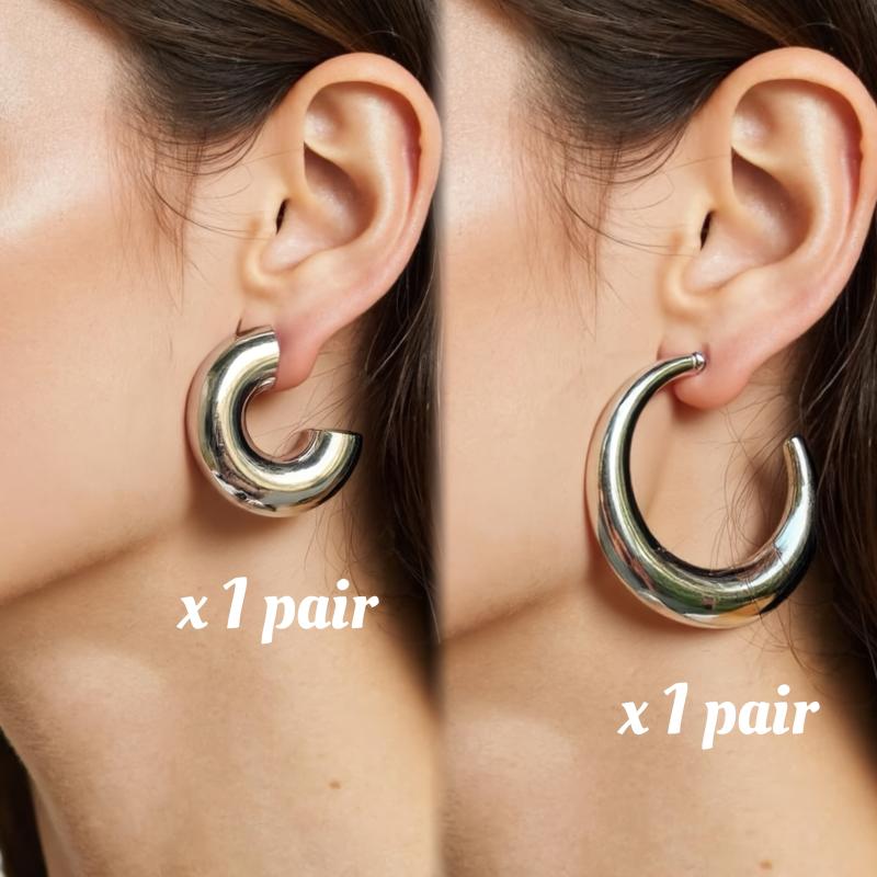 Elevate your style with this minimalist 2 pairs of hoop earrings. Hypoallergenic and interchangeable design make it suitable for work, dates, and as a thoughtful gift set.