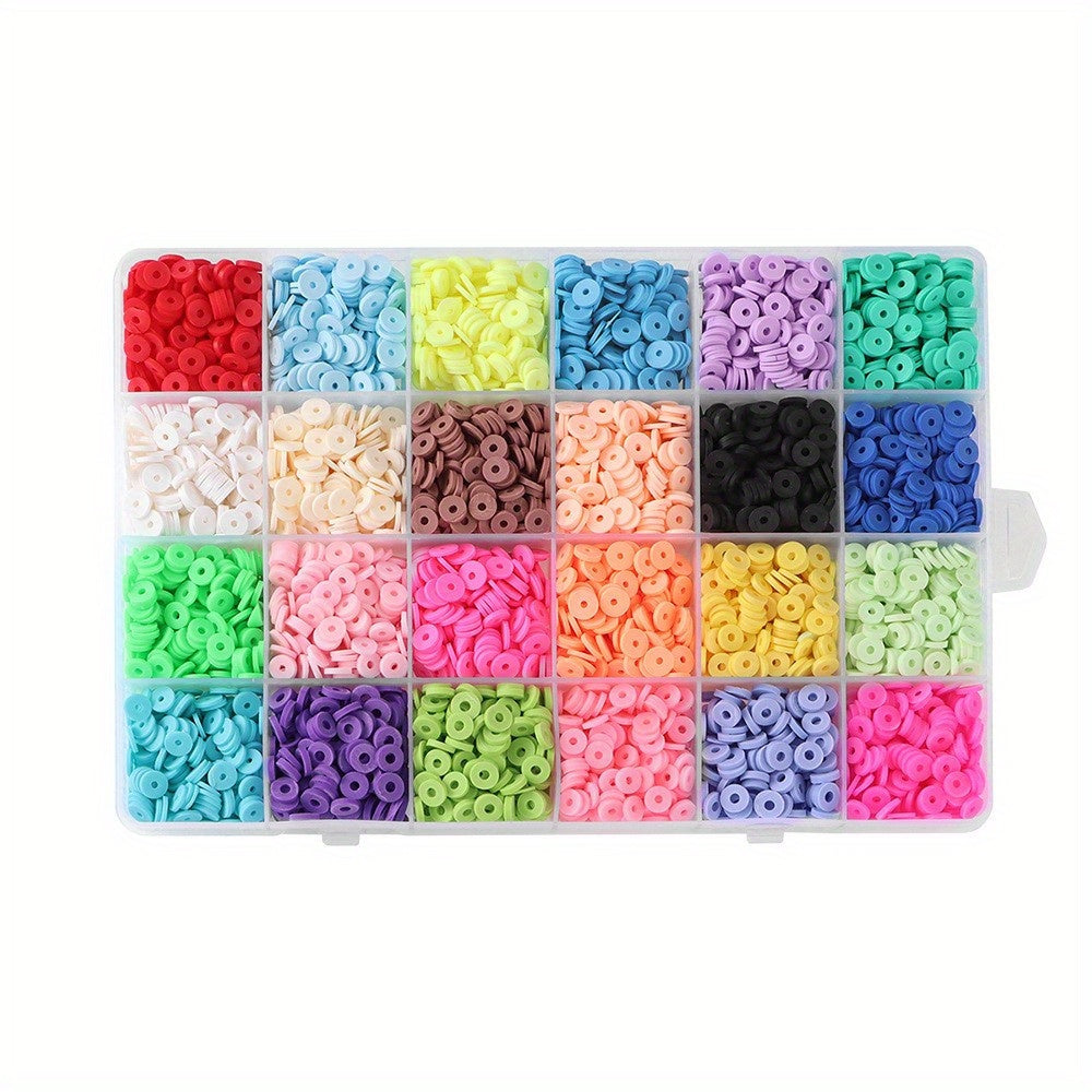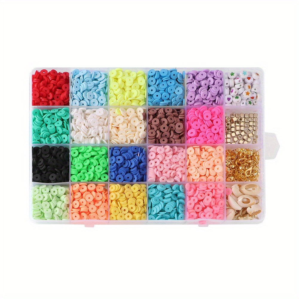 Create your own unique bracelets with this flat round polymer clay bead set. Includes smiling face letter spacer beads.