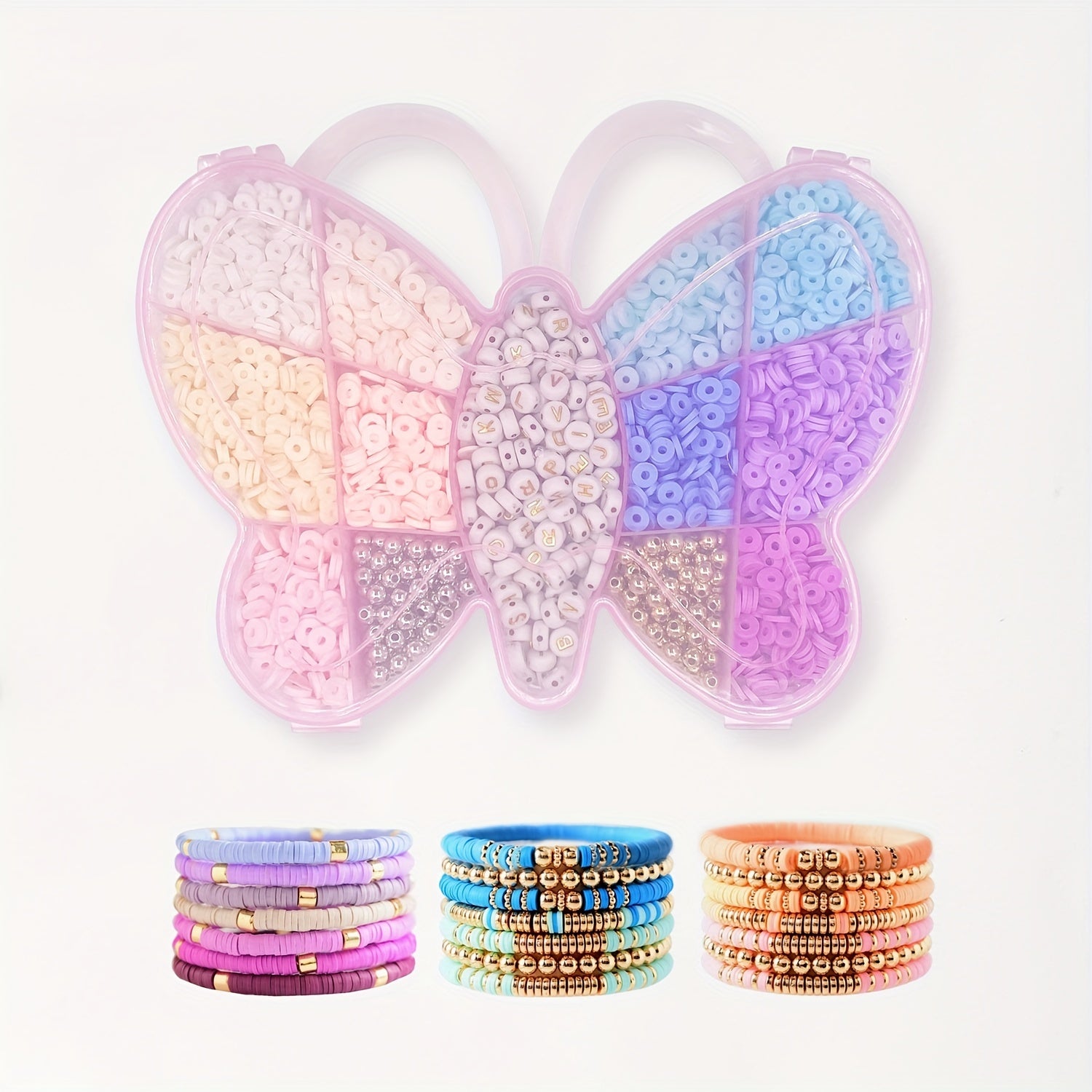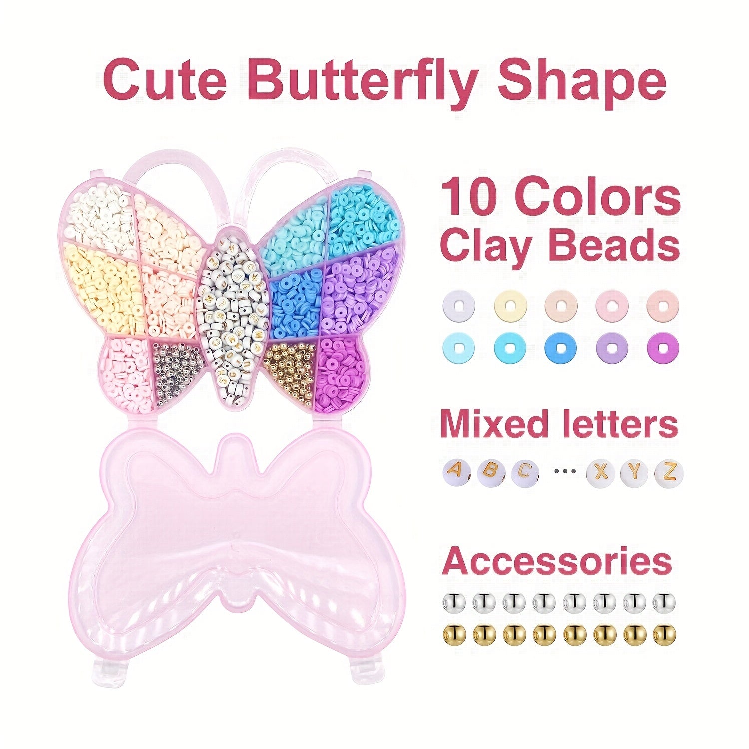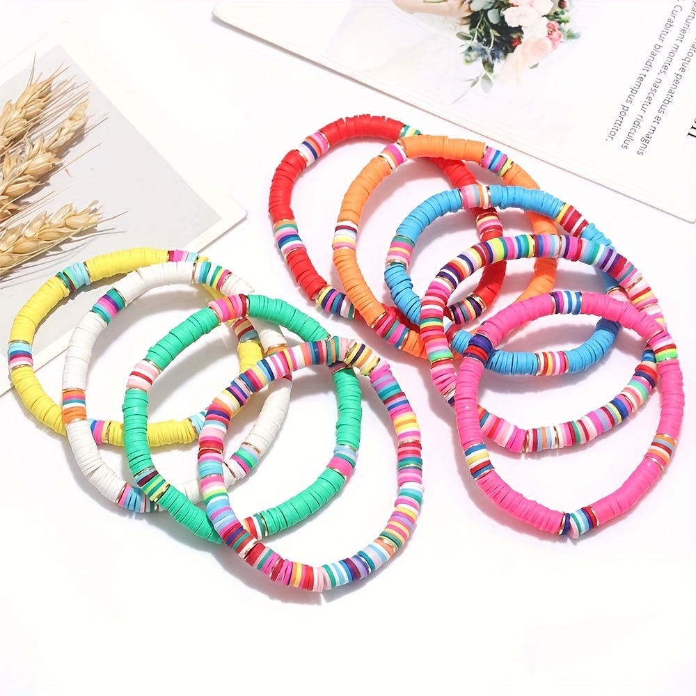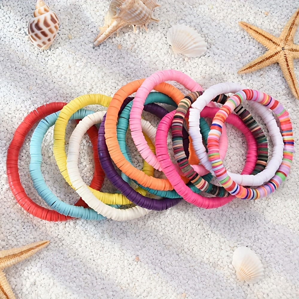 Create beautiful bracelets and necklaces with this flat round polymer clay bead kit. The set includes 6mm beads with letter patterns and spacers for a unique design. Perfect as a birthday gift!