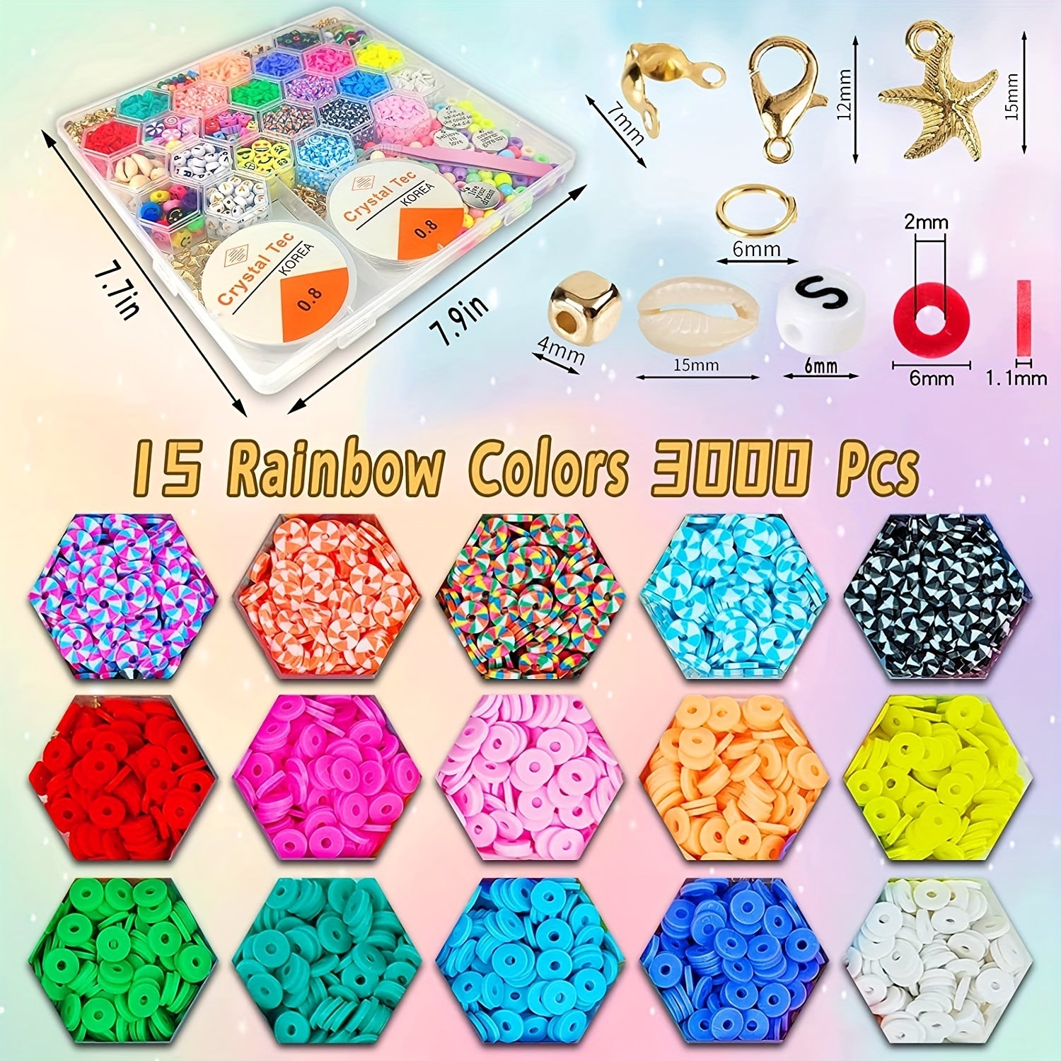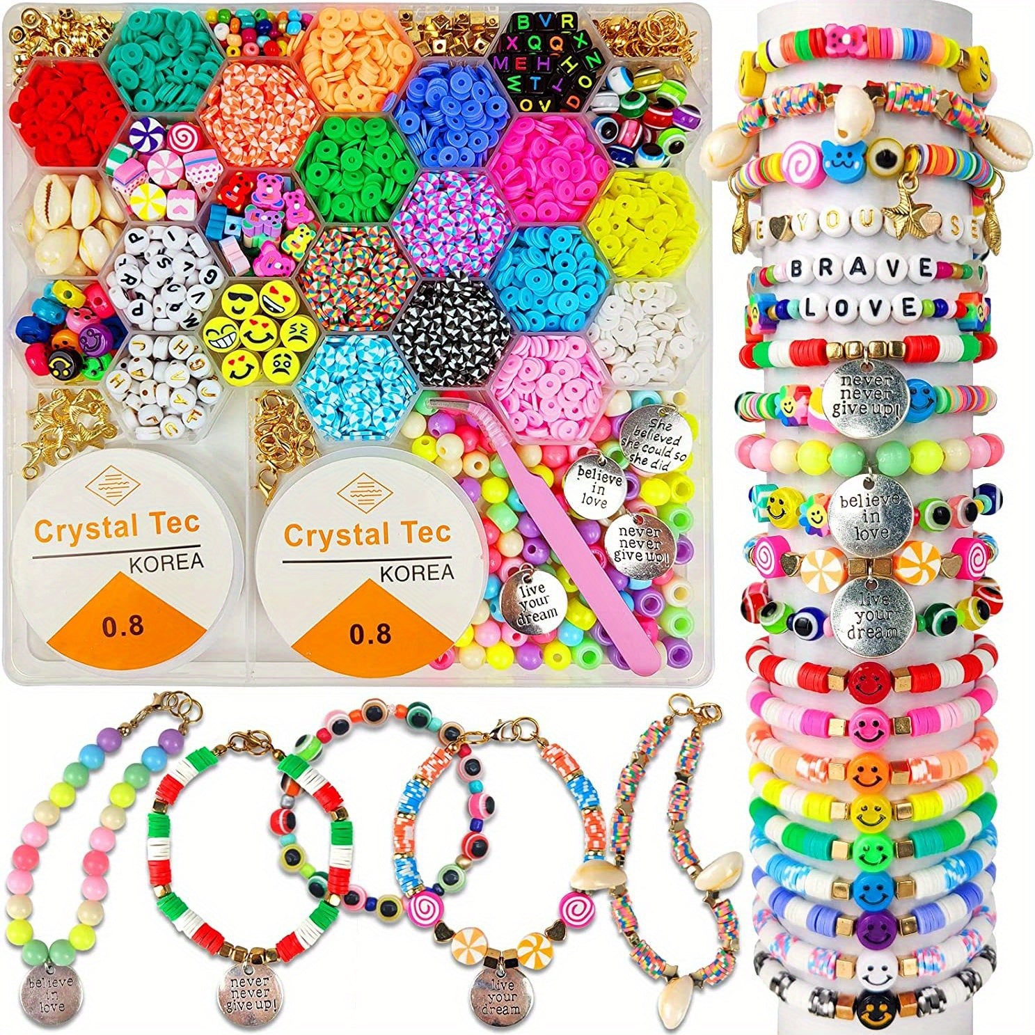 Create stunning bracelets with this DIY arts and crafts kit featuring 6mm flat clay beads. Perfect gift for 6-12 year old girls who love to make jewelry.