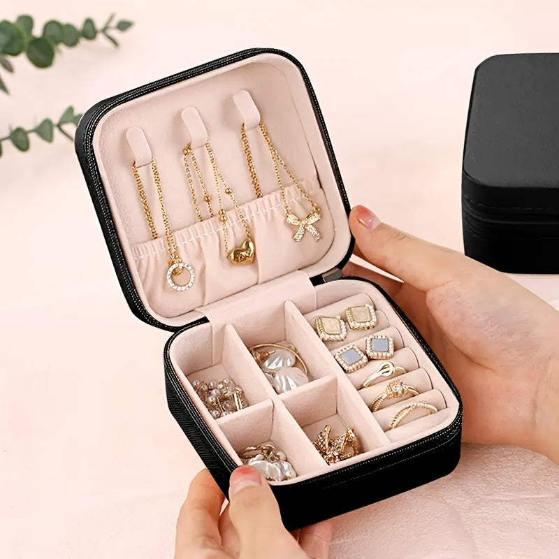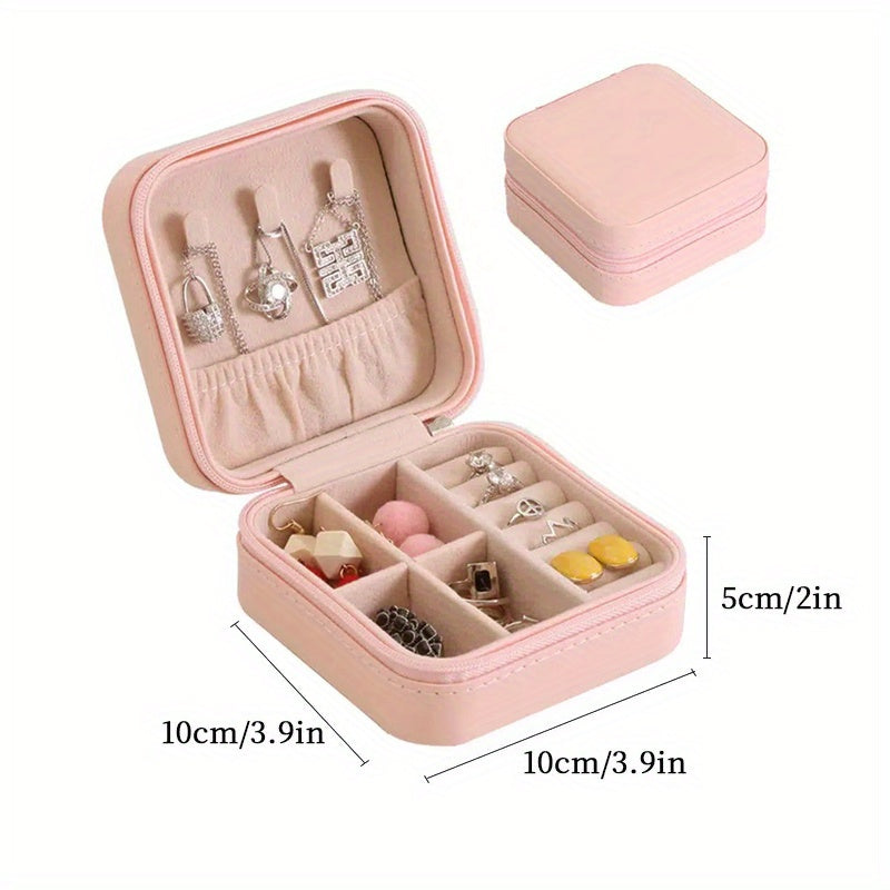 This jewelry organizer box is perfect for travel and keeping your necklaces and earrings organized. Available in pink and green.