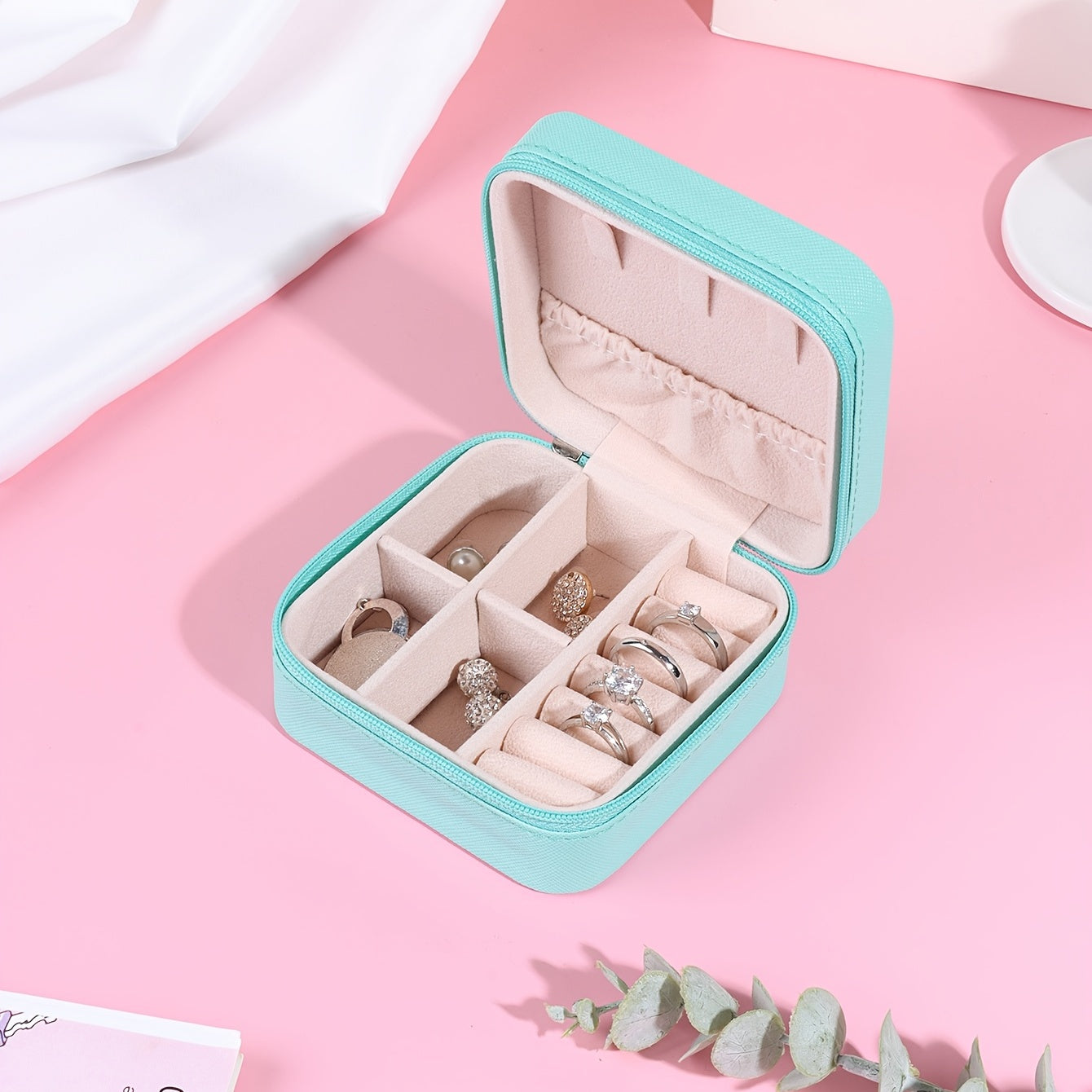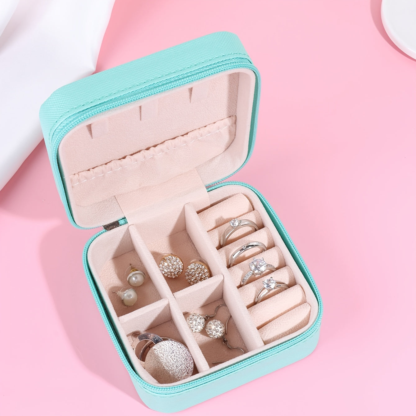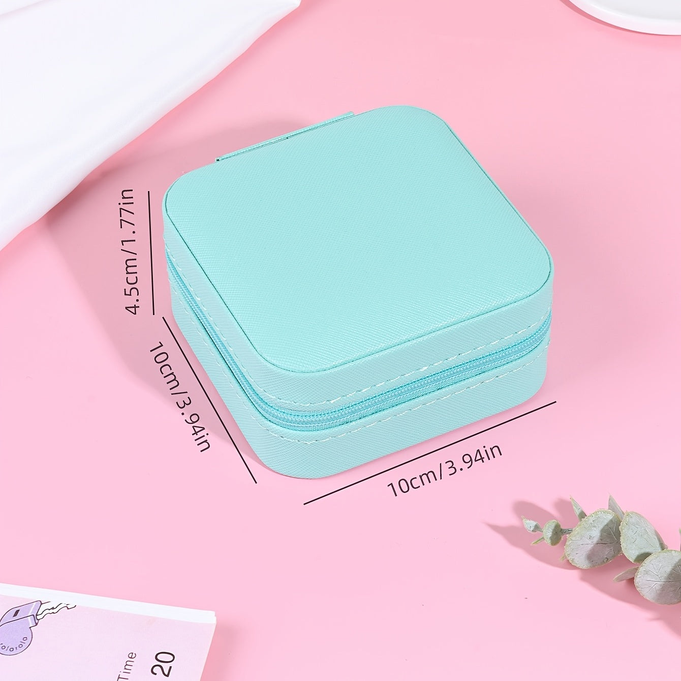 Keep your earrings organized and safe with this portable PU leather jewelry box. Features a zipper for secure closure.