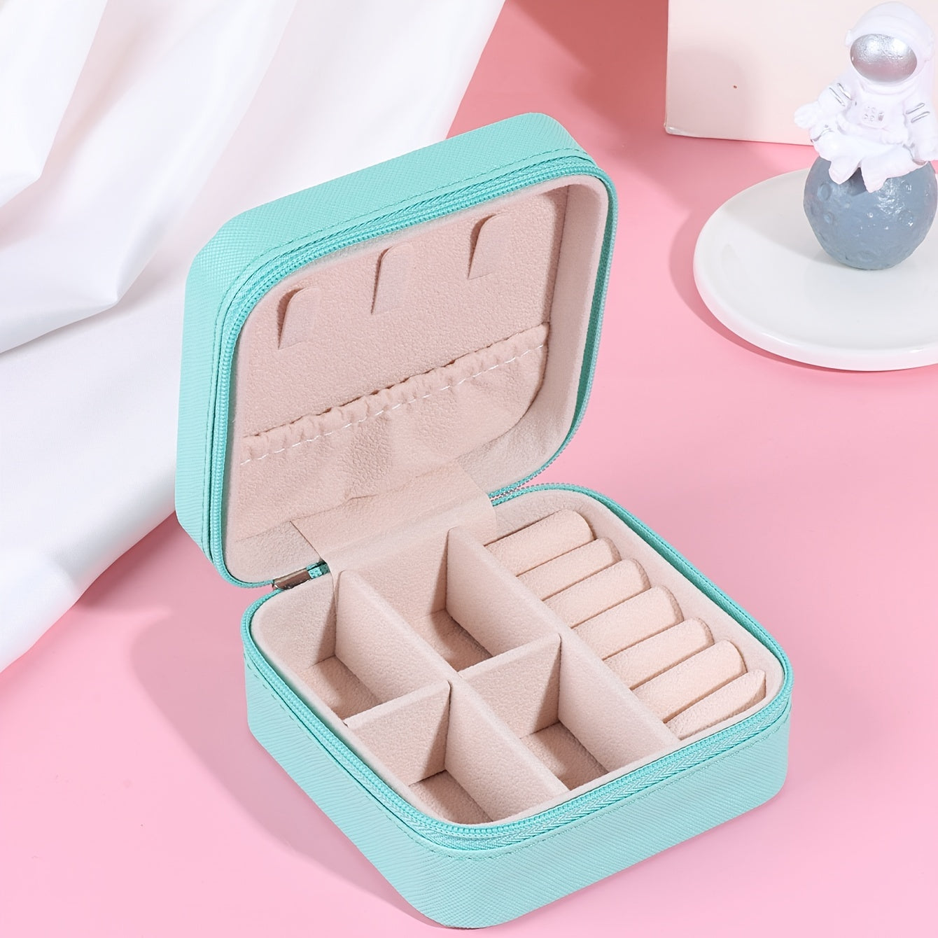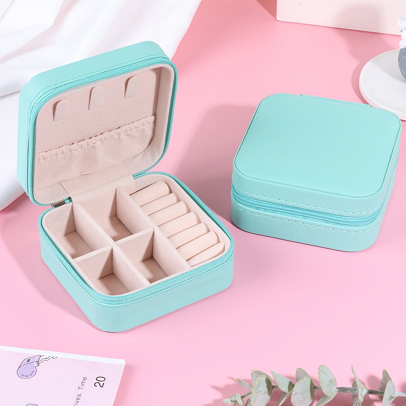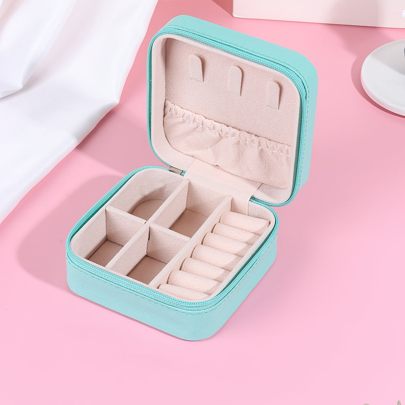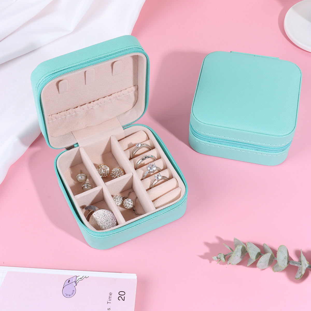 Keep your earrings organized and safe with this portable PU leather jewelry box. Features a zipper for secure closure.