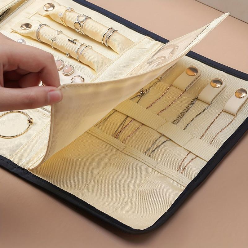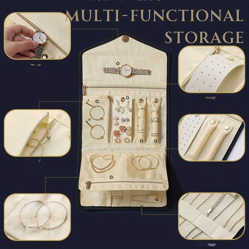 Keep your jewelry organized and secure with this multifunctional storage bag. Perfect for storing bracelets, earrings, and other accessories. Take your favorite pieces with you wherever you go.