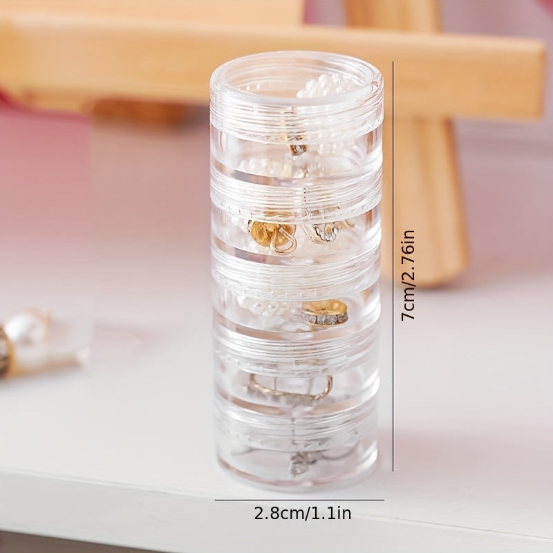 Keep your jewelry organized and easily accessible with this portable round storage box. The transparent design allows you to see the contents at a glance.