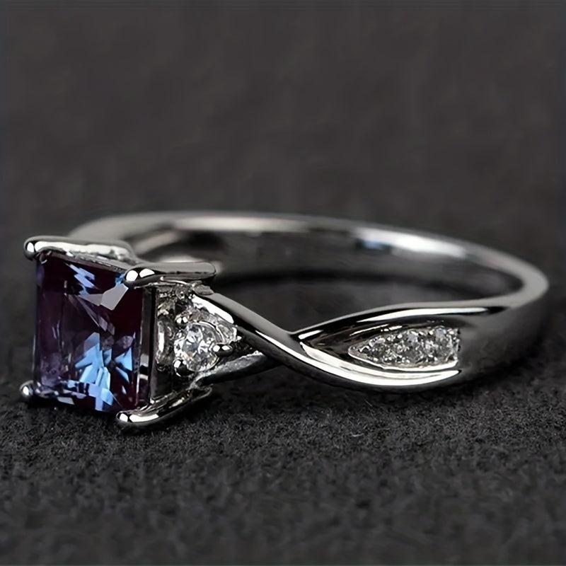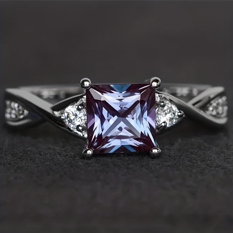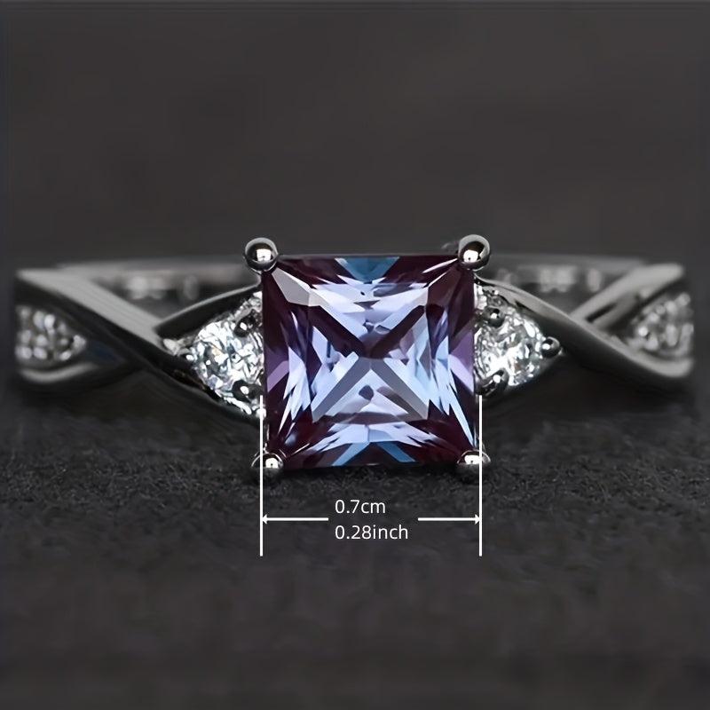 Stunning 4 prong setting ring featuring a princess cut sea synthetic zirconia, perfect for engagement, wedding, or bridal jewelry.