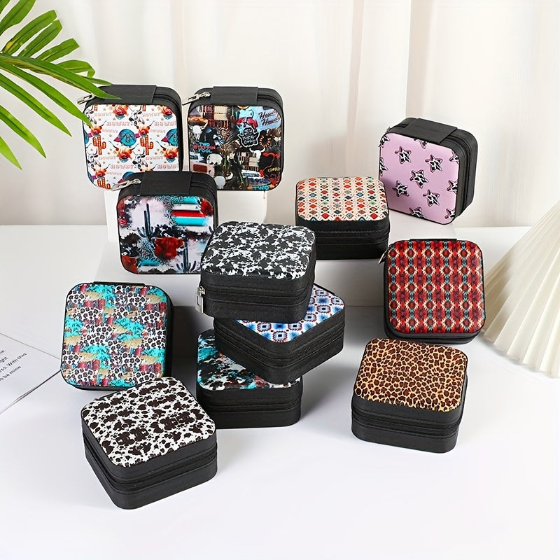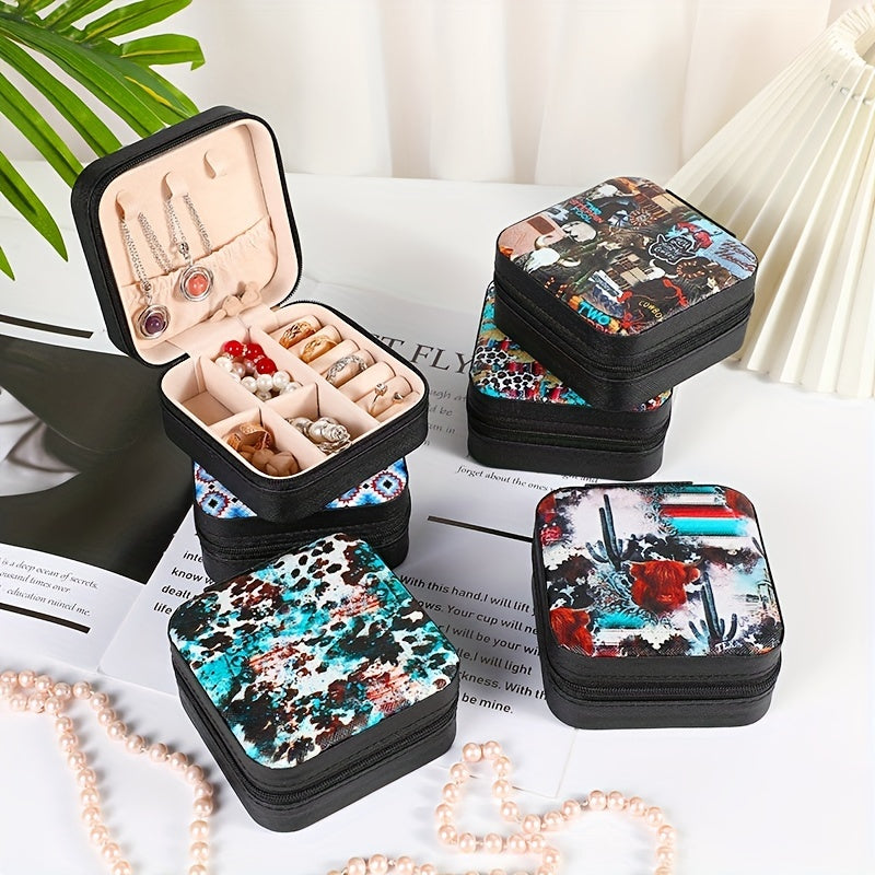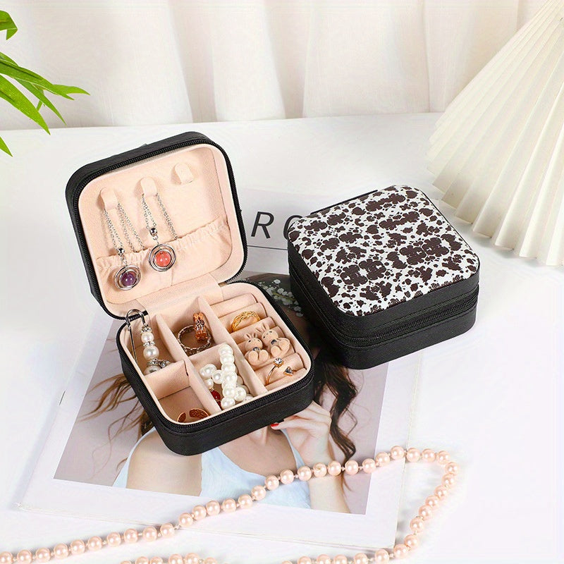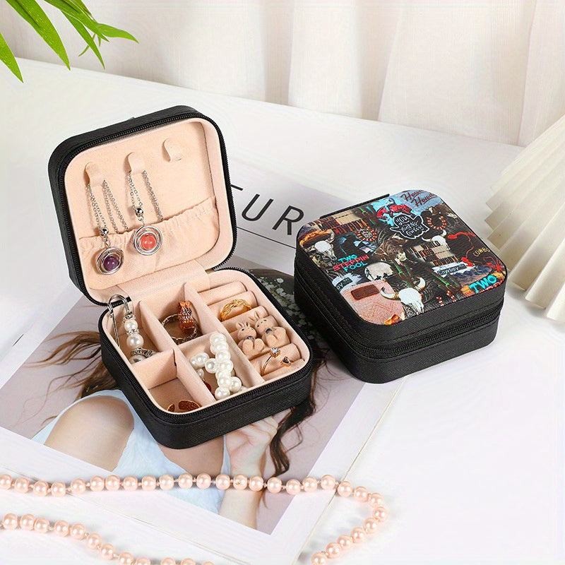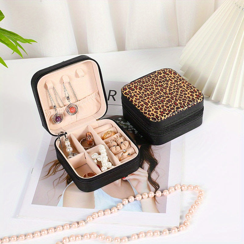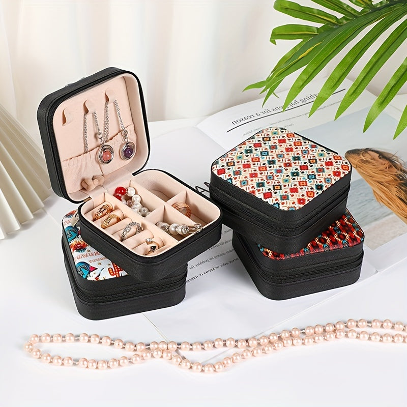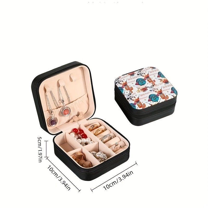 Keep your rings, necklaces, and studs organized with this stylish mini portable jewelry storage box featuring a zipper closure.