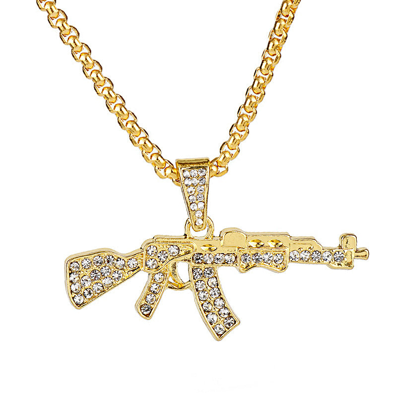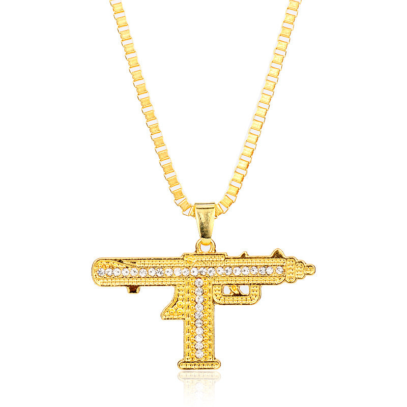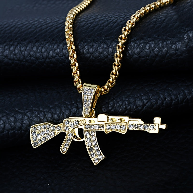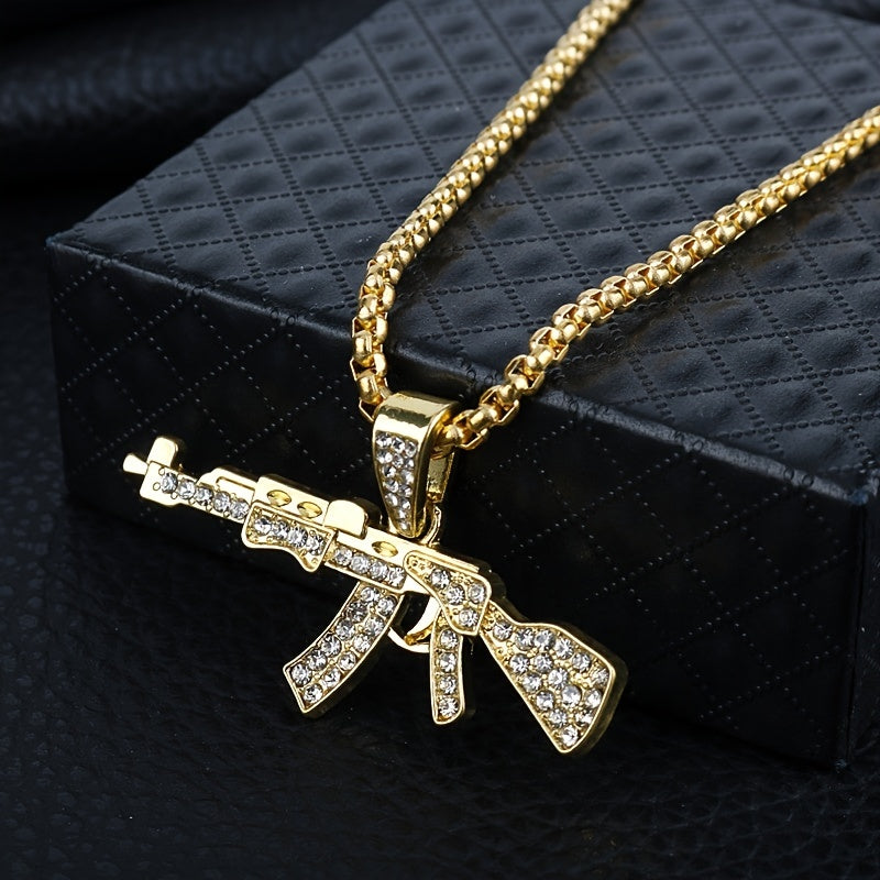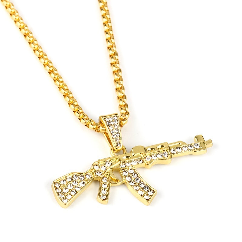 Add a touch of punk and hip hop style with this gun-shaped pendant necklace featuring rhinestones.