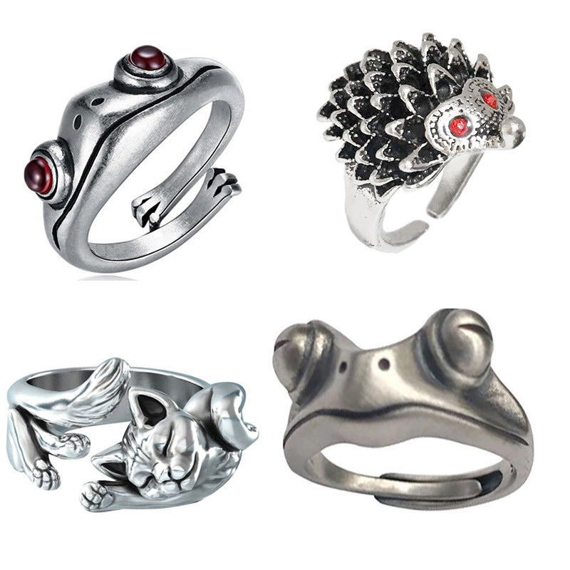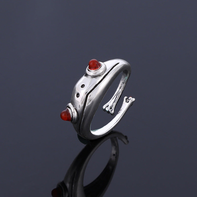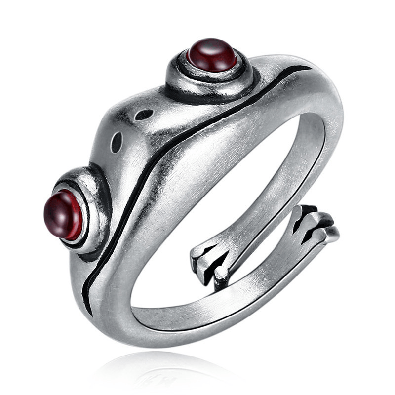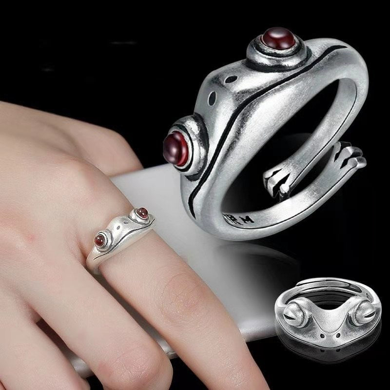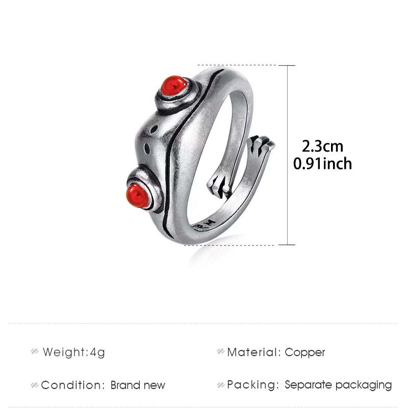 This unique ring features a punk retro design with a frog and cat motif for a vintage look. It is resizable and suitable for both men and women.