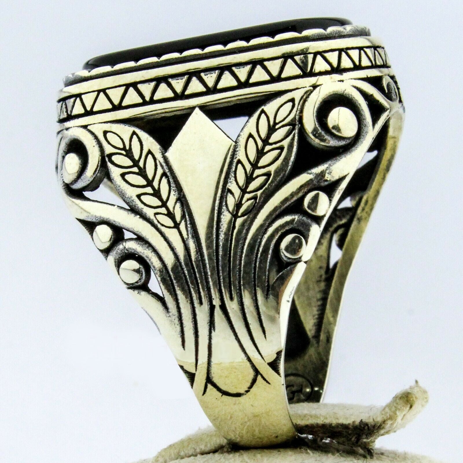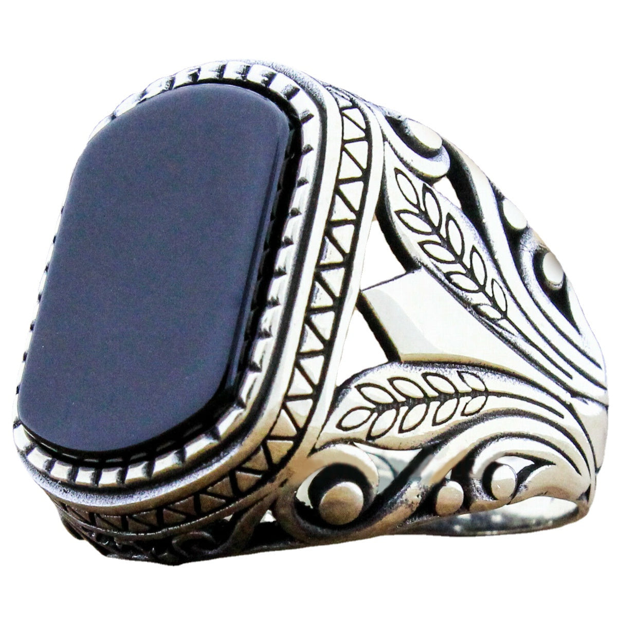 Embrace a punk retro style with this stone inlaid pattern ring designed for men. The unique design and quality craftsmanship make it a standout accessory for any occasion.
