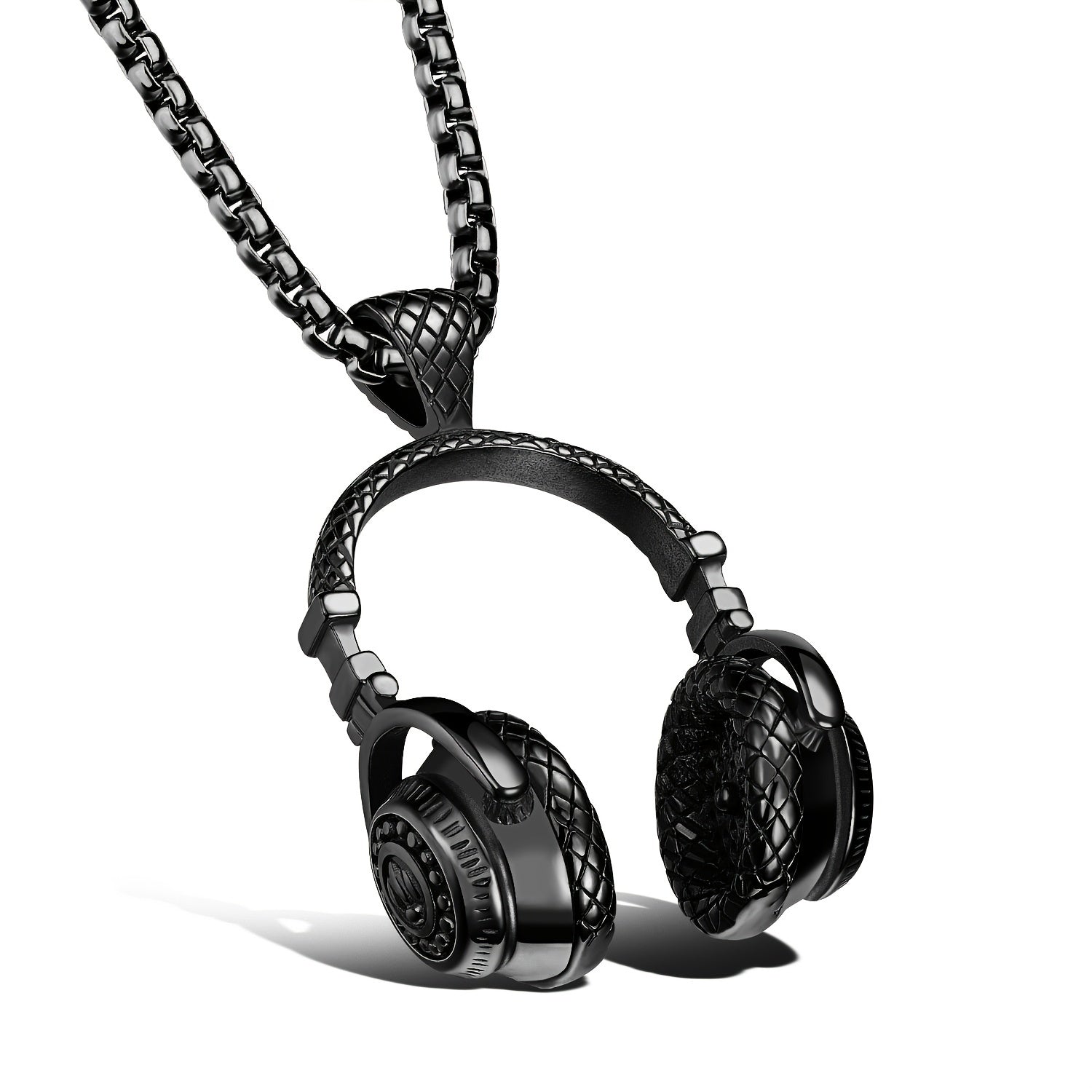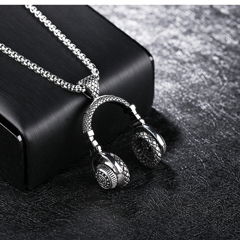This men's hip hop chain necklace features a punk rock style headphone pendant. Make a bold fashion statement with this unique accessory.