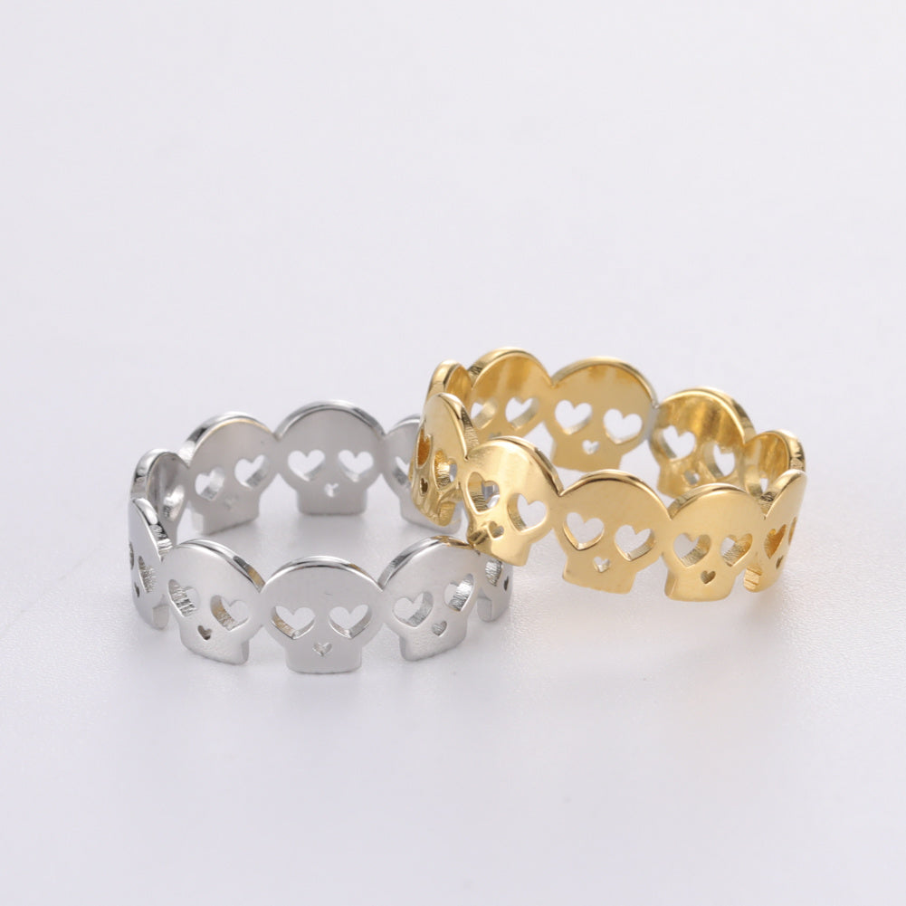 This punk-style ring features a unique design with skeleton skulls, perfect for parties or Halloween. Made of high-quality stainless steel, it makes a great gift for men.