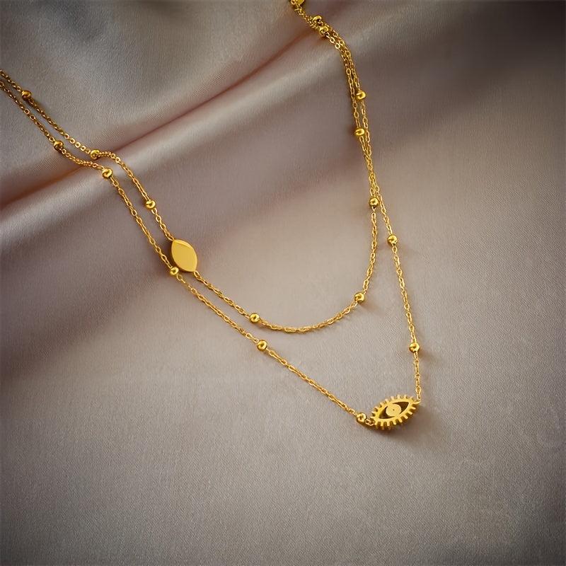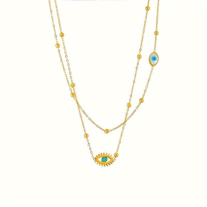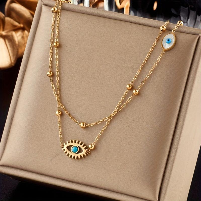 This punk-inspired stainless steel eye necklace features a durable resin pendant on a double chain. Ideal for daily wear or gifting, it adds a boho and vintage touch to your style.