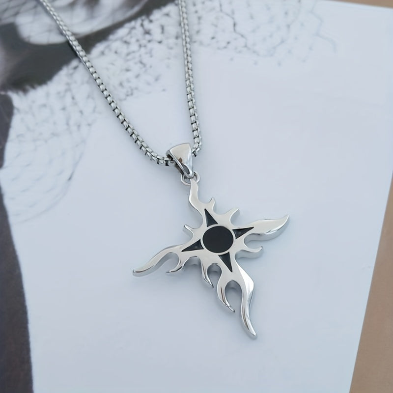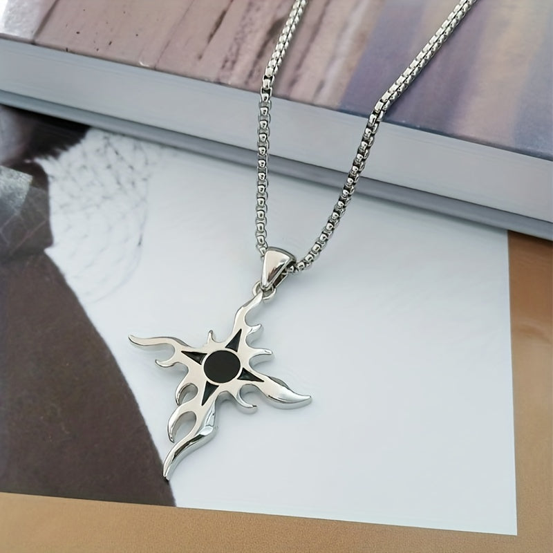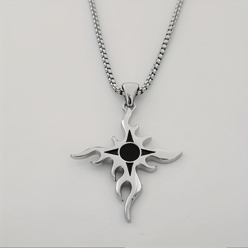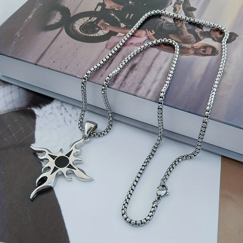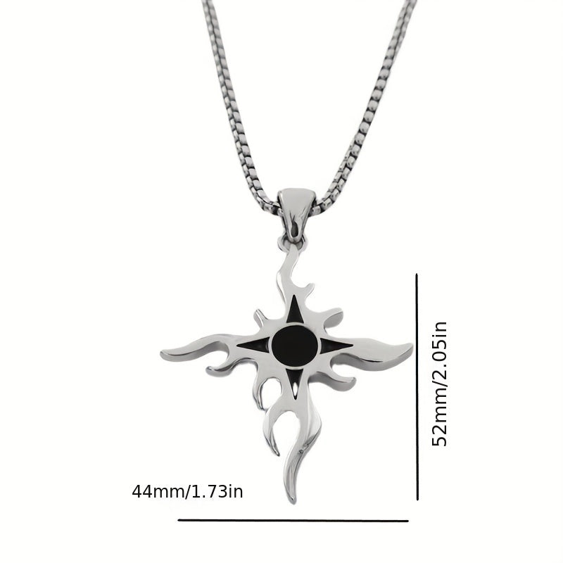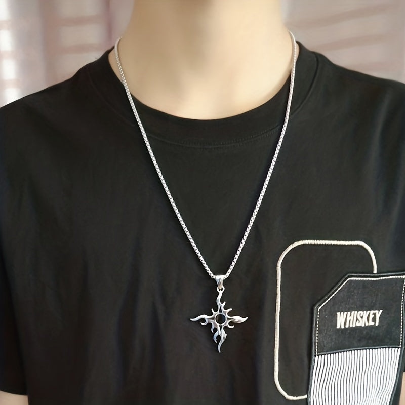 This punk style necklace features a flame cross design made from titanium steel, perfect for adding a personalized touch to your hip hop streetwear look.