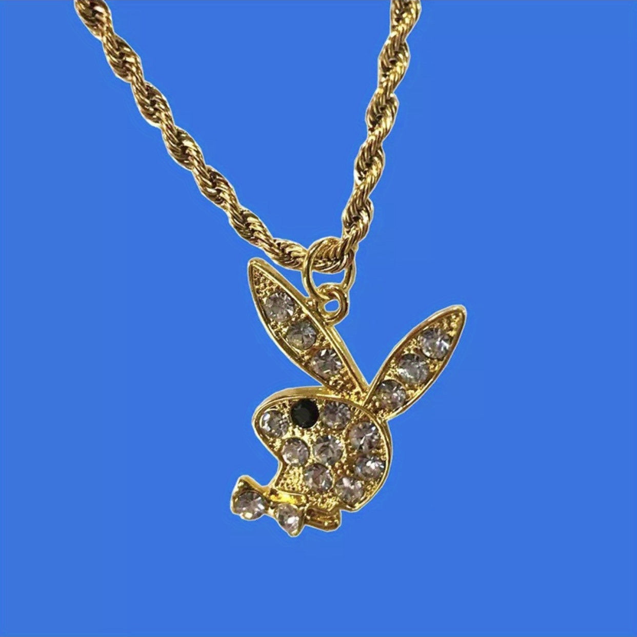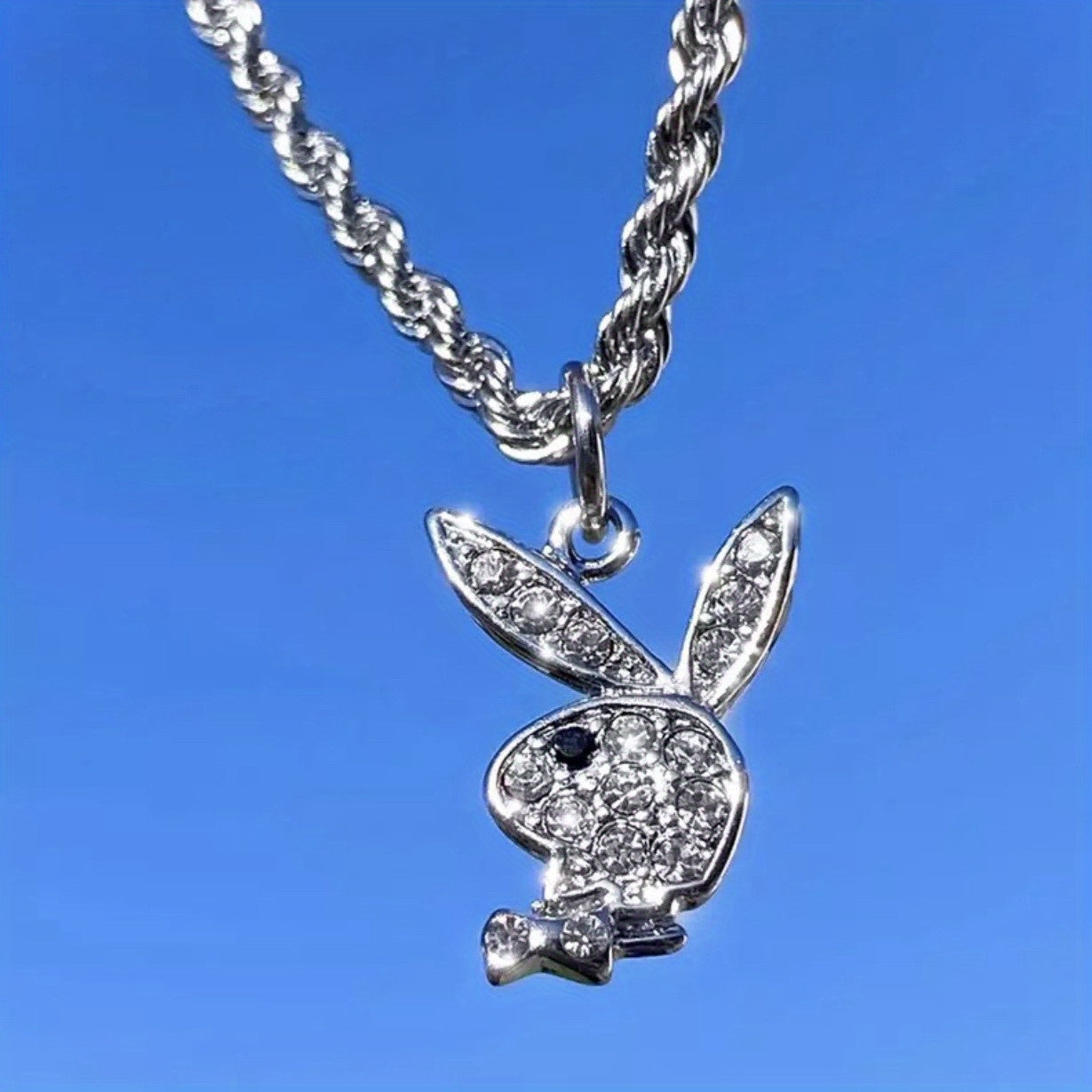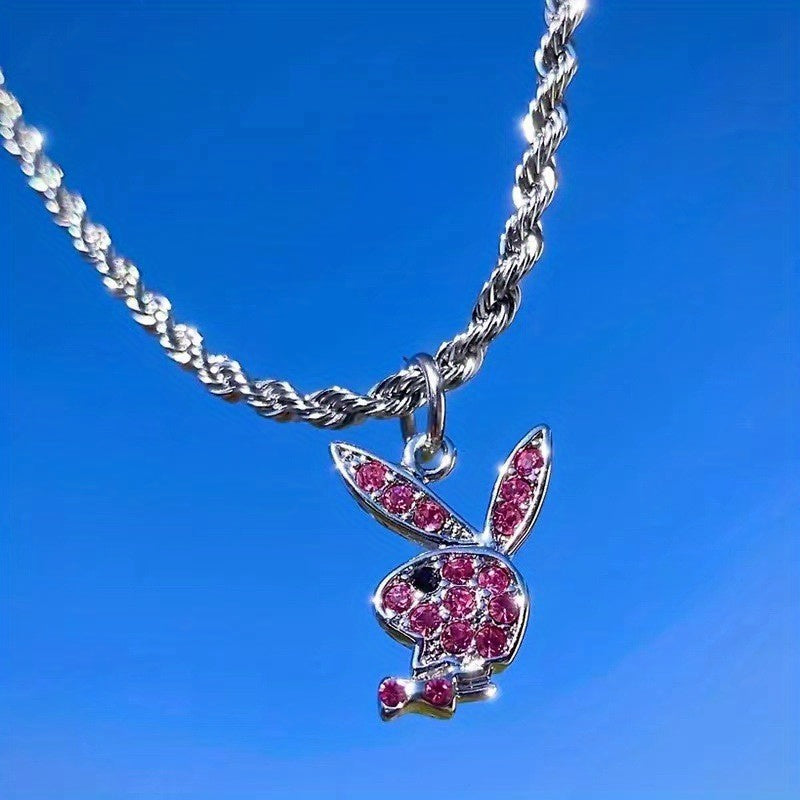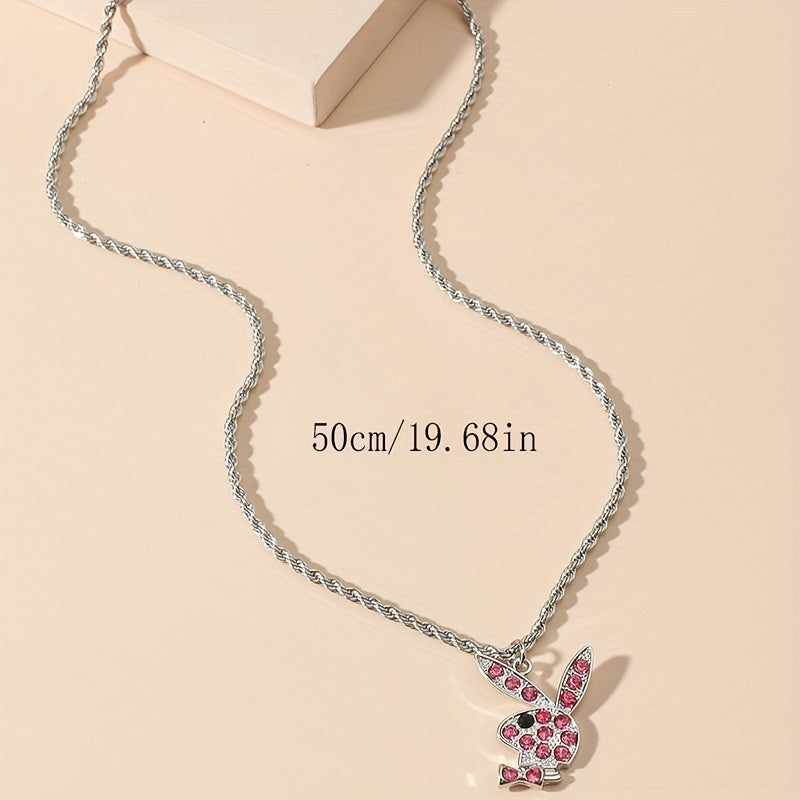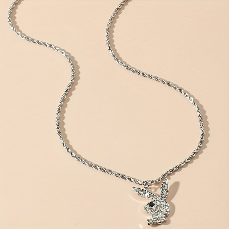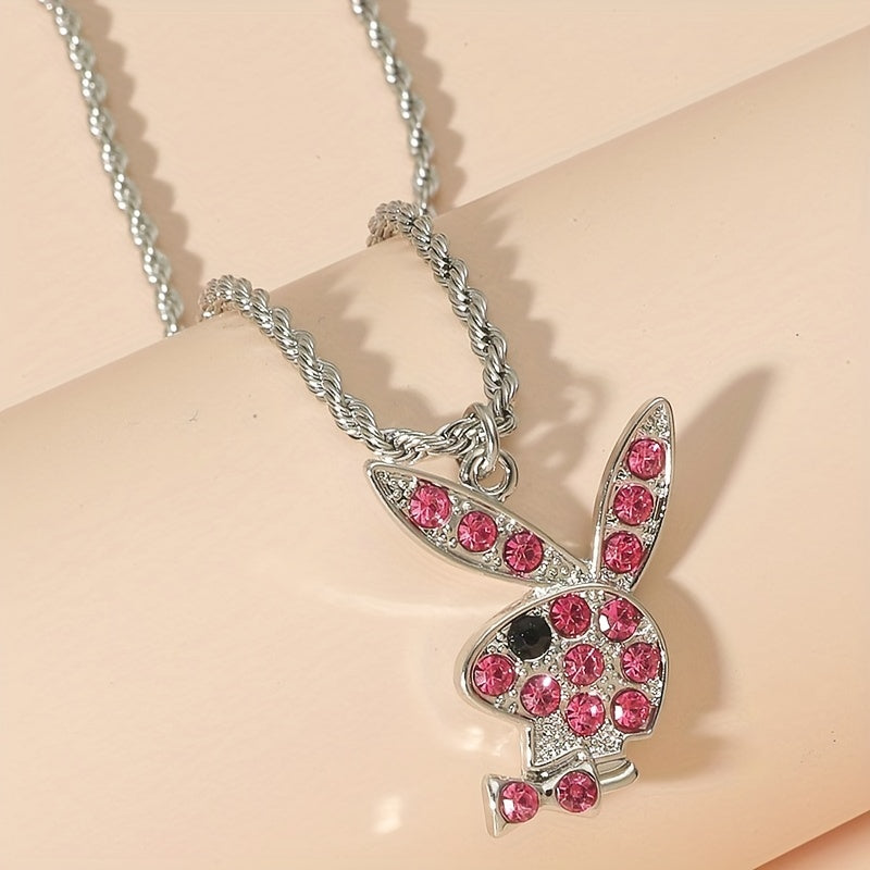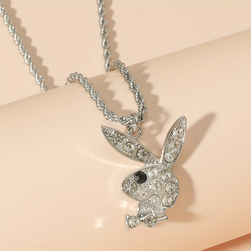 This punk style necklace features a cute rabbit pendant adorned with artificial diamonds, perfect for both men and women.