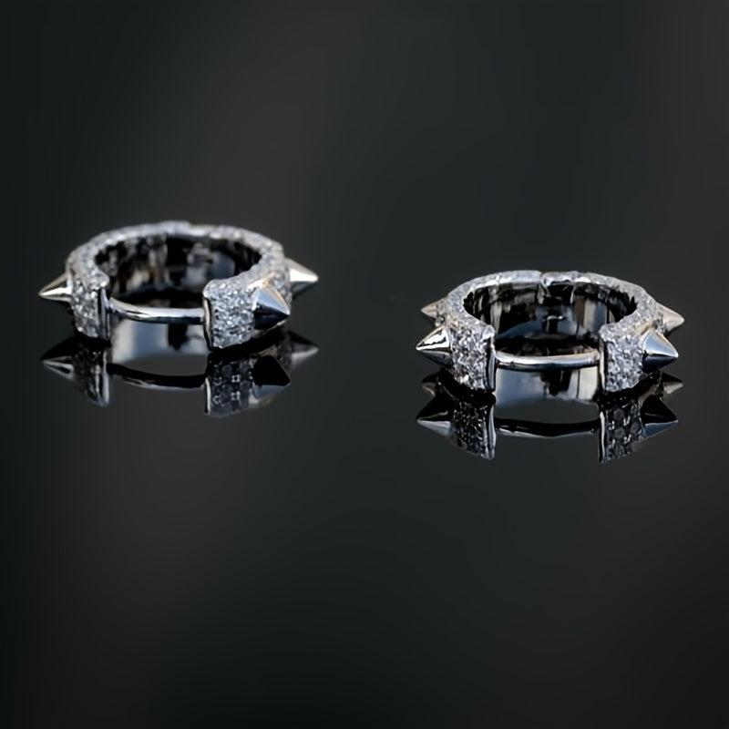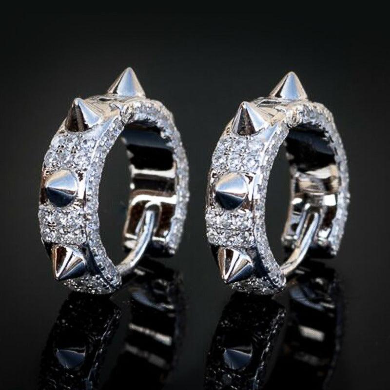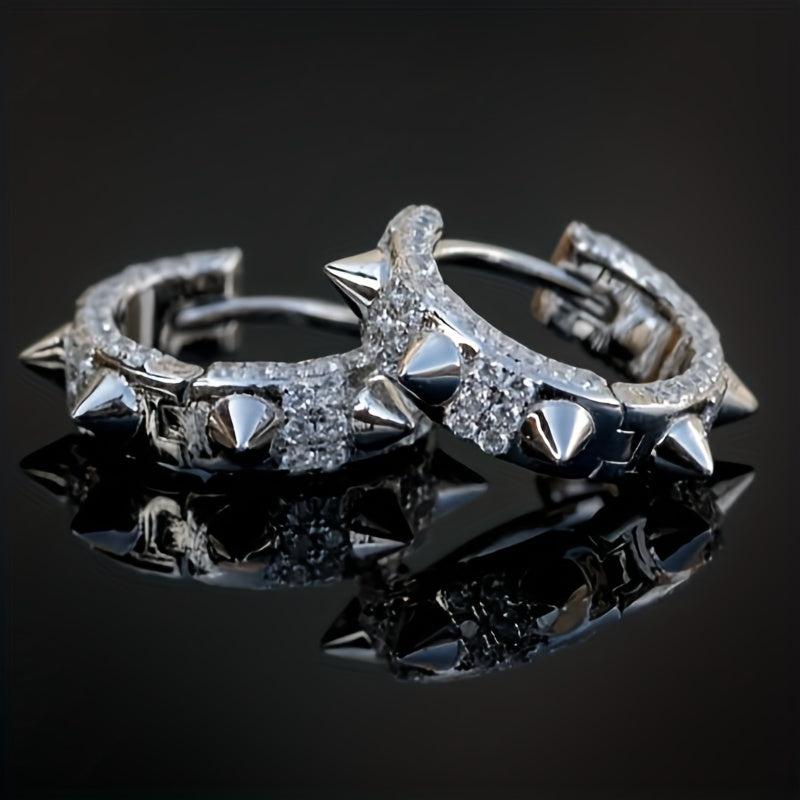These edgy earrings feature pointed rivets and zirconia inlays, perfect for men and women who love punk fashion. Great as a hip hop-inspired gift.