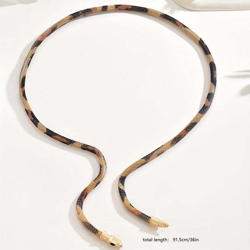This fashionable snake chain necklace features a punk style design with adjustable leopard and snake print iron elements. It's a versatile accessory perfect for parties.
