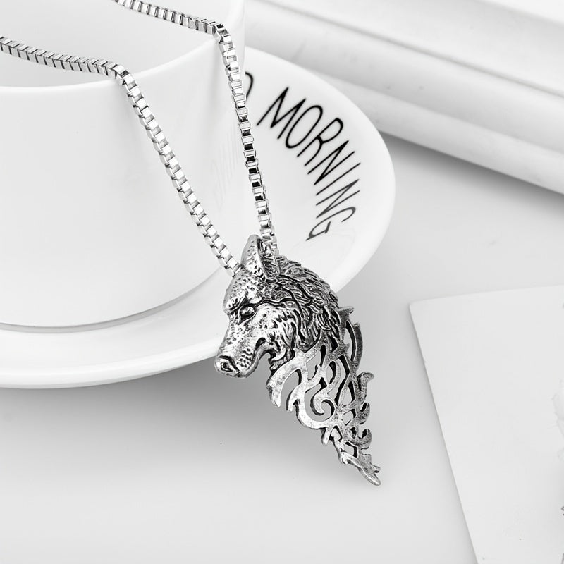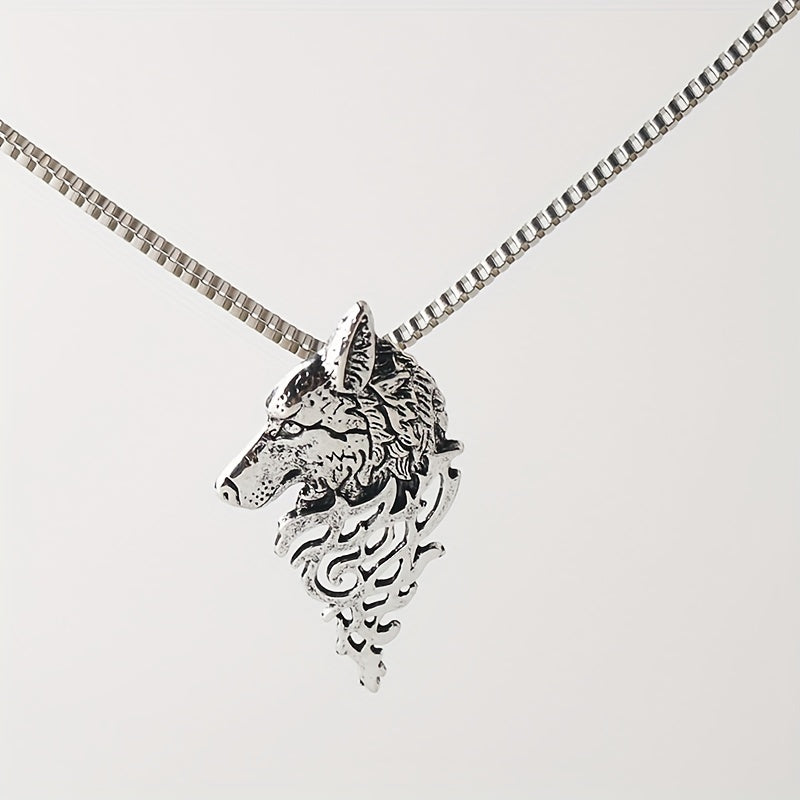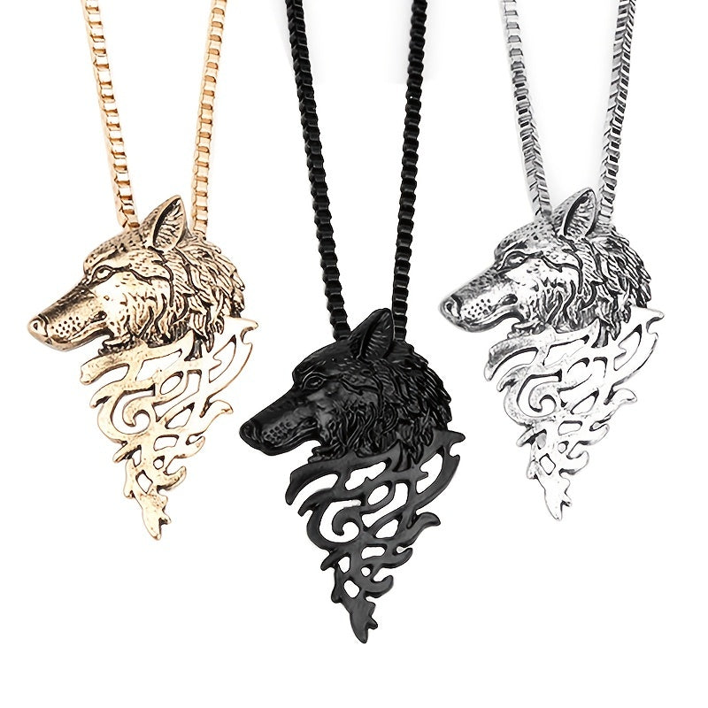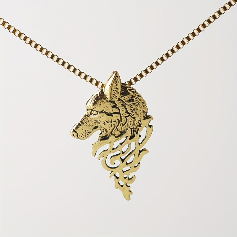 Add a touch of punk style to your outfit with this wolf head pendant necklace. It's perfect for men who love vintage and hip hop fashion. The necklace is designed to complement your sweater and chain.