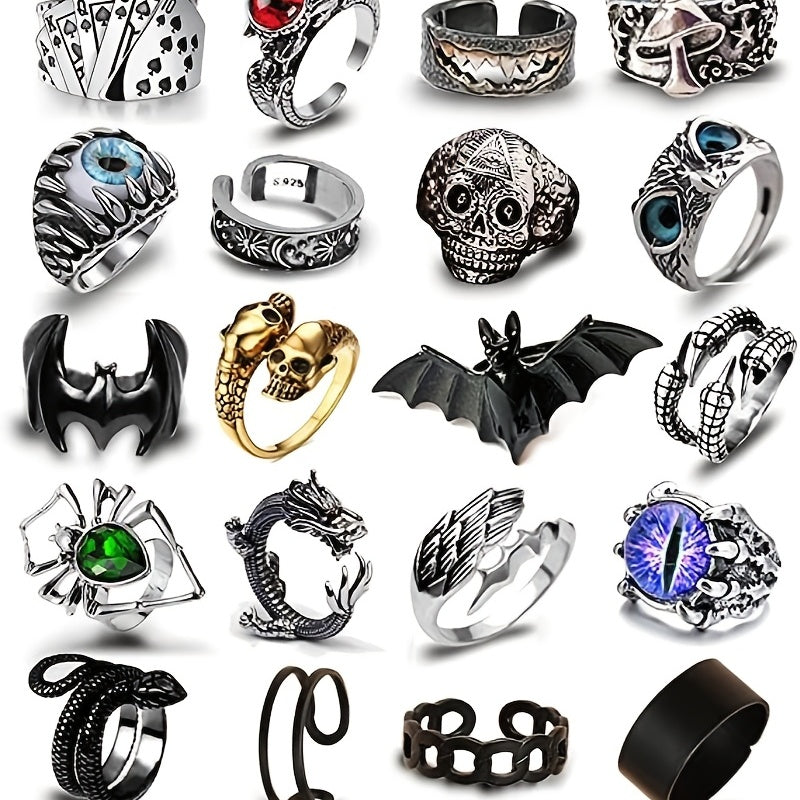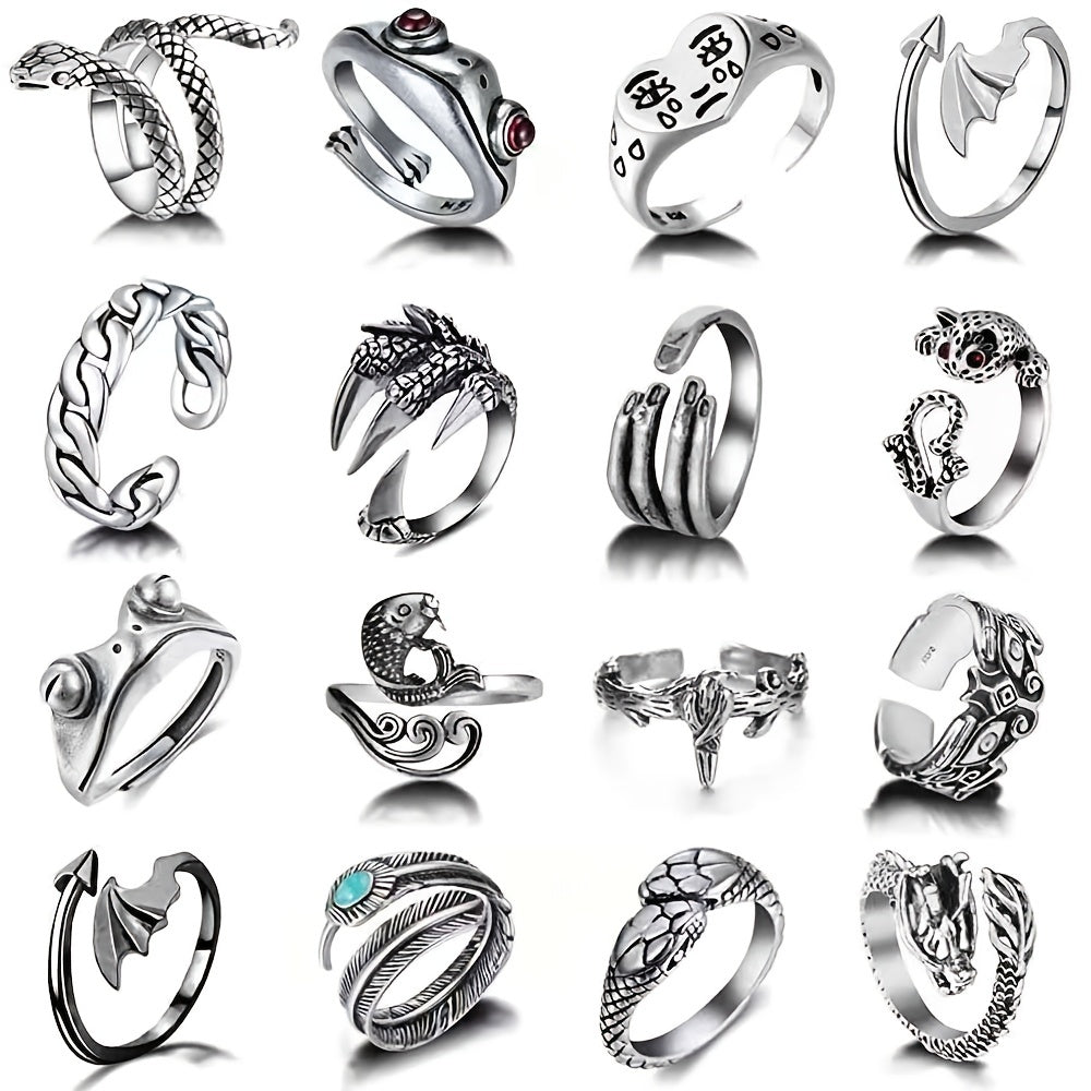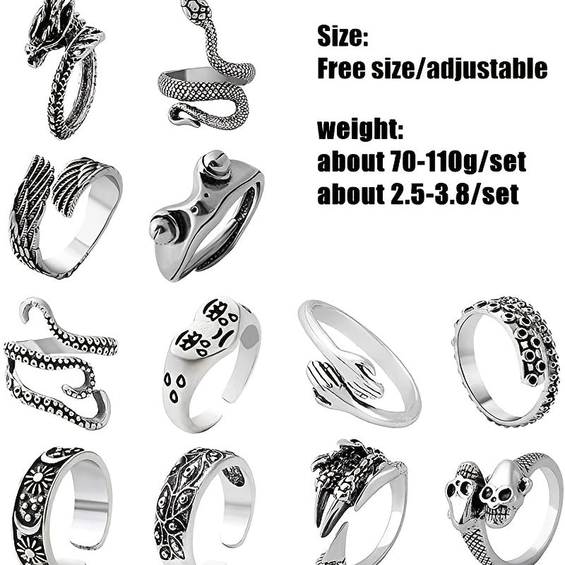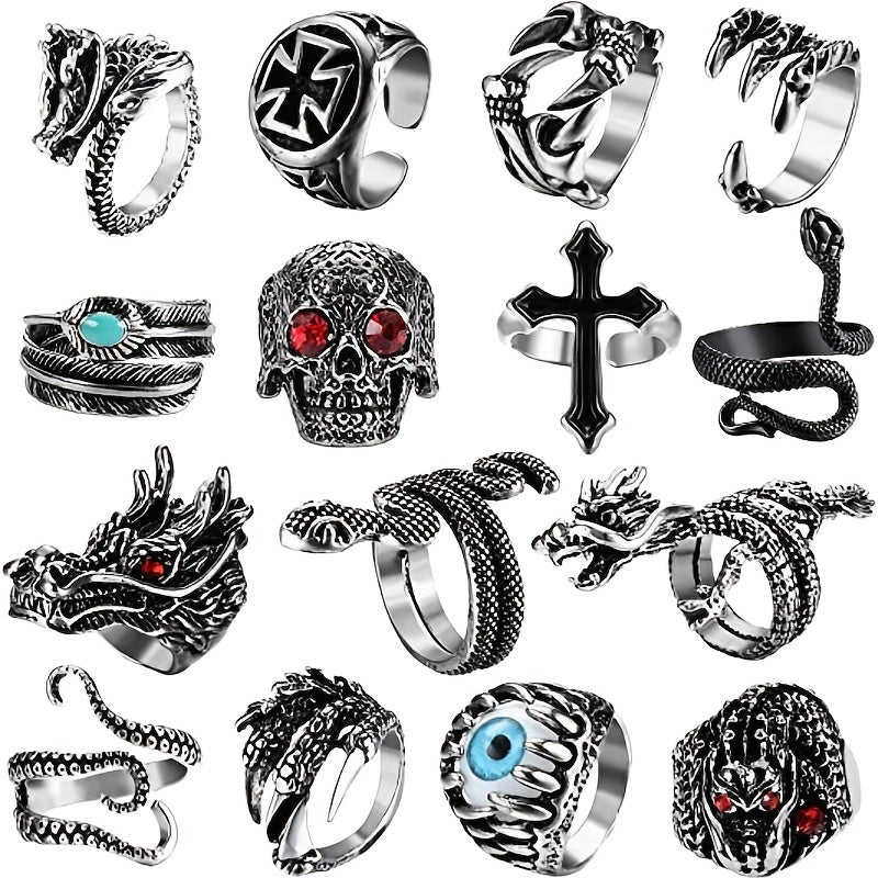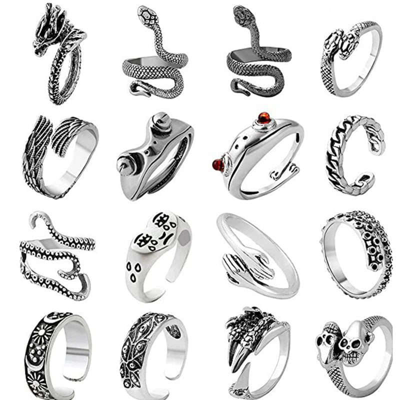 This set includes 15/16/20pcs of punk vintage rings featuring snake and dragon designs. Perfect for men who like edgy accessories.