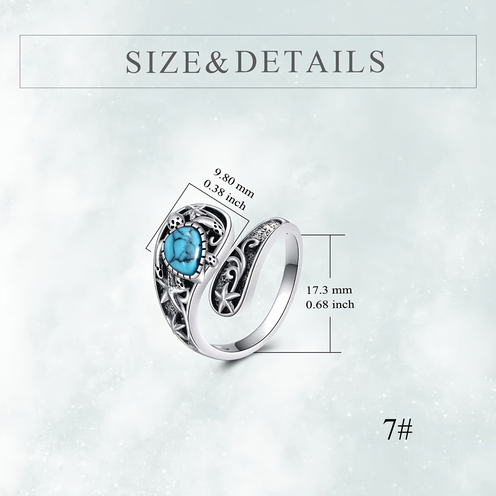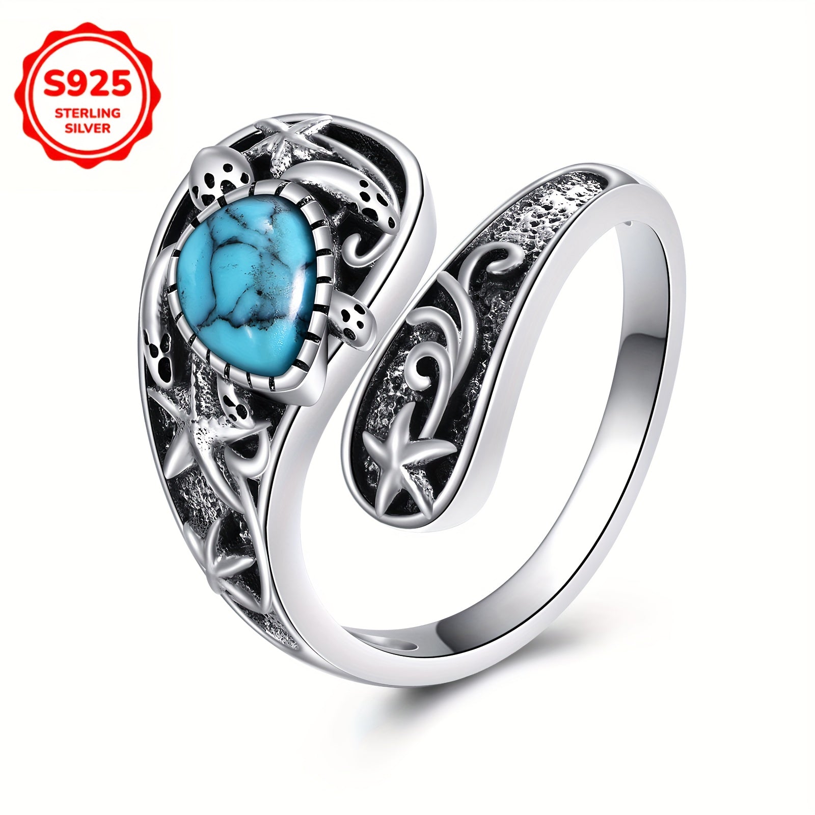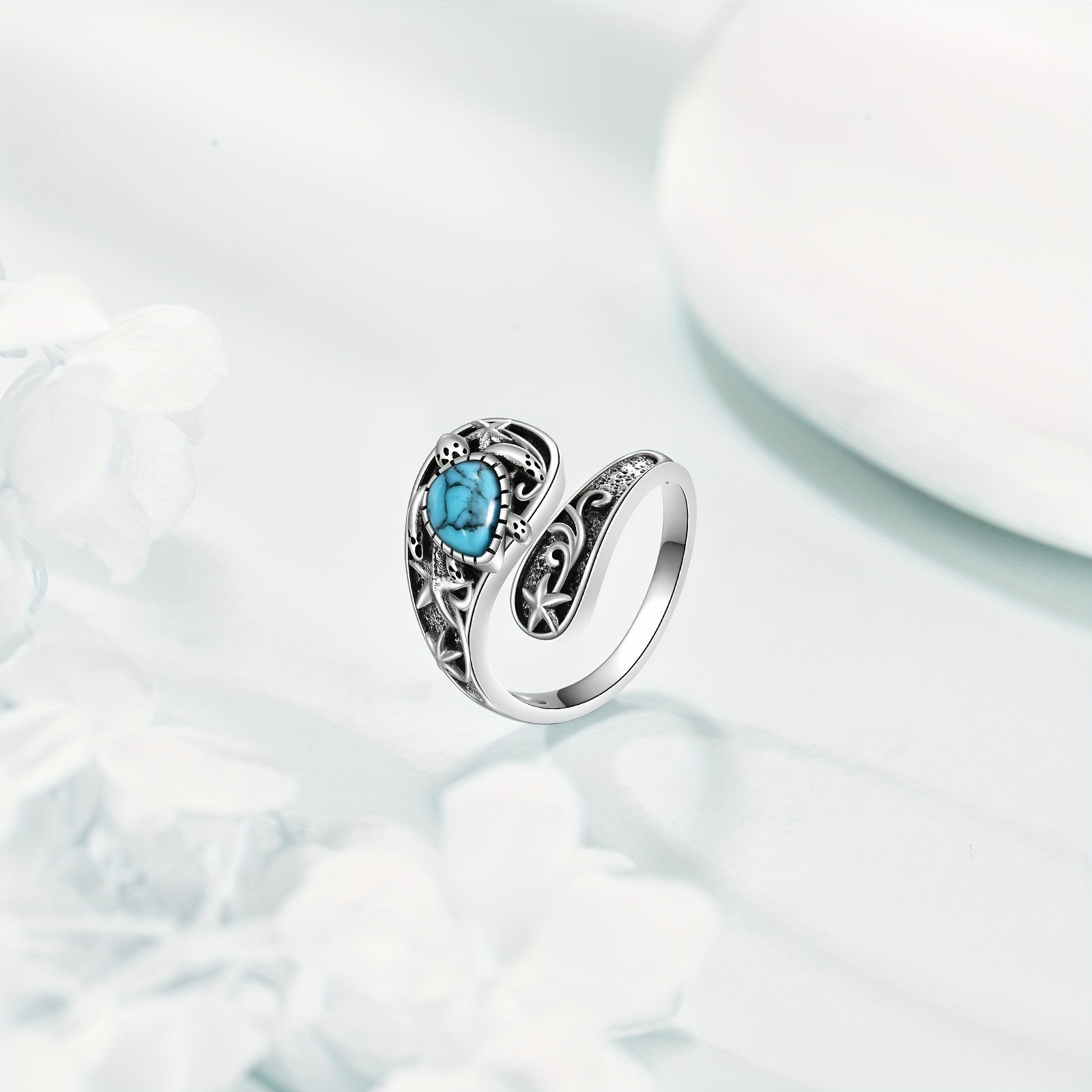 Elegant pure S925 silver ring featuring a synthetic turquoise stone and a turtle-shaped opening design. Perfect for adding a touch of nature-inspired charm to your look.