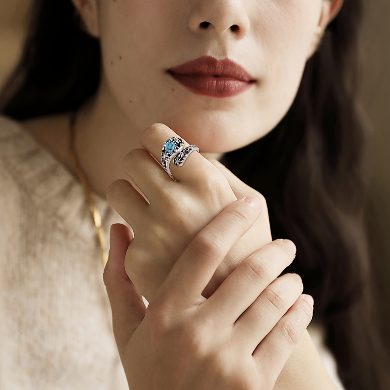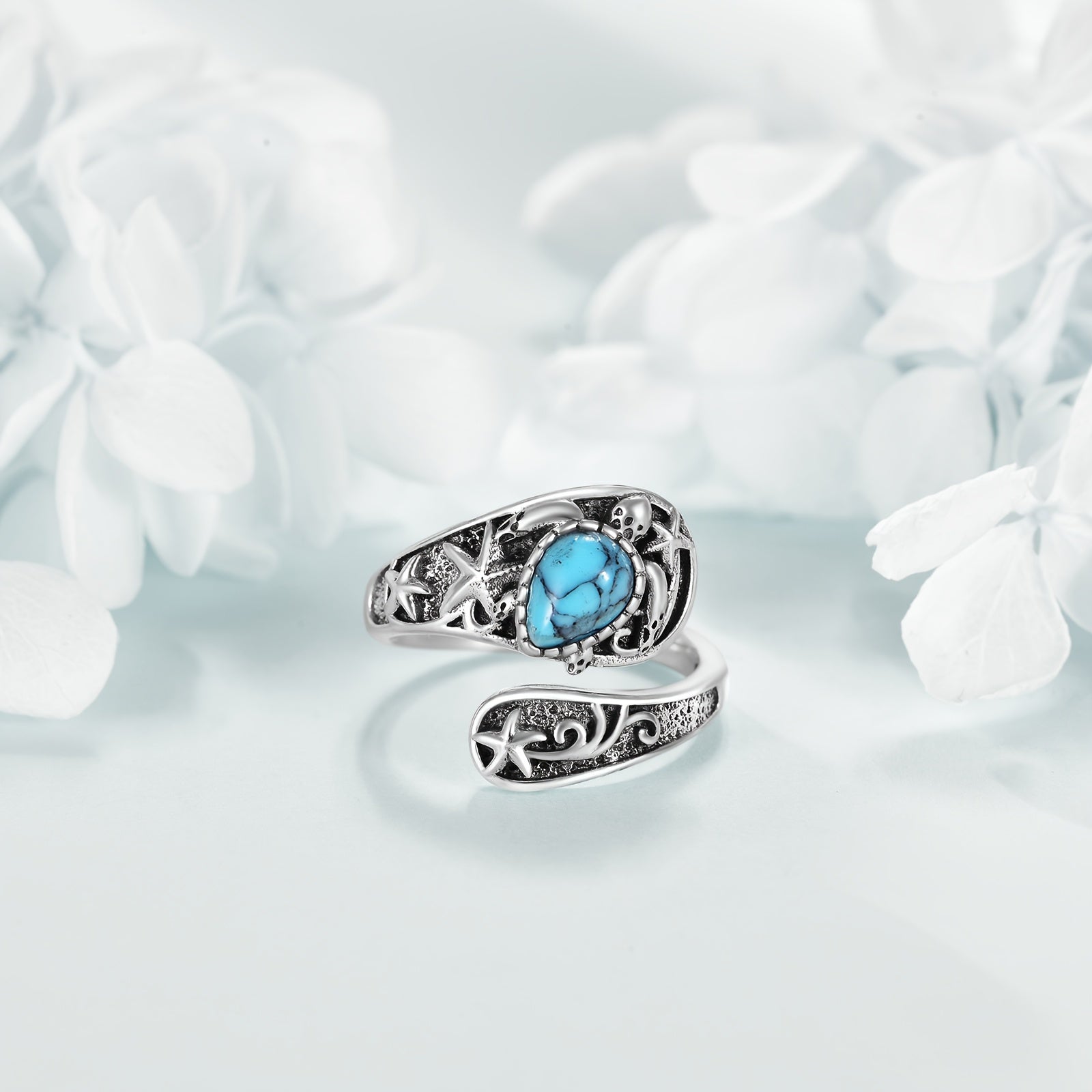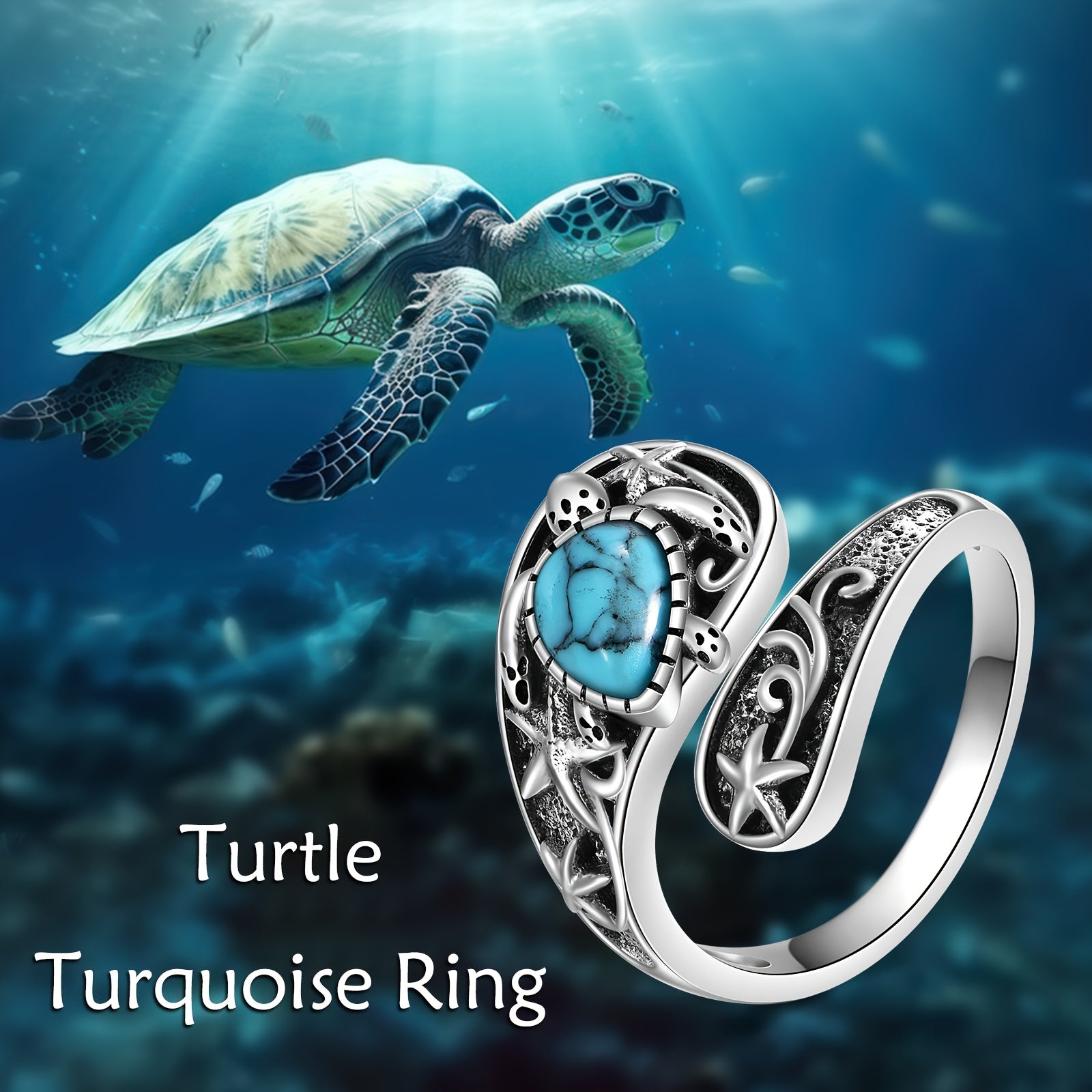Elegant pure S925 silver ring featuring a synthetic turquoise stone and a turtle-shaped opening design. Perfect for adding a touch of nature-inspired charm to your look.