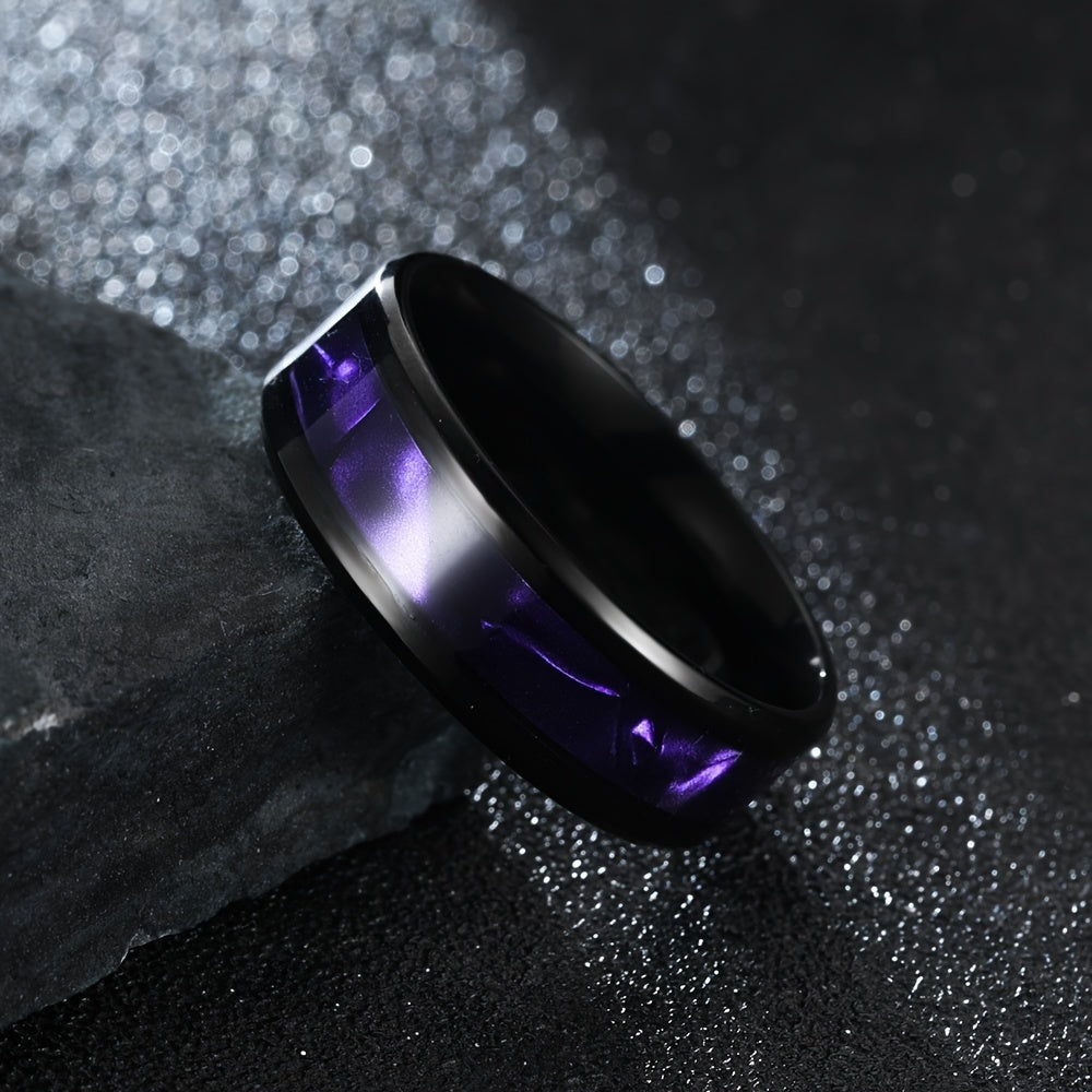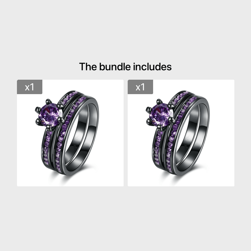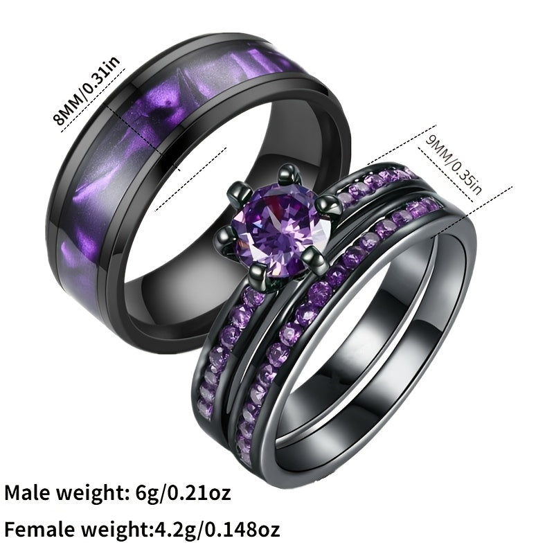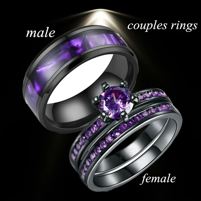 Make a bold statement with this 2-piece set of purple titanium steel rings featuring a gun purple zircon and princess engagement design.