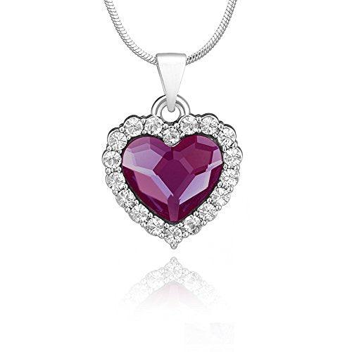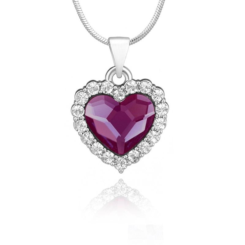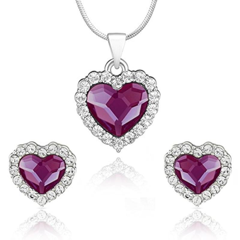 Elegant pendant set featuring Swarovski Crystals in a stunning purple violet heart design. Rhodium plated for lasting shine.