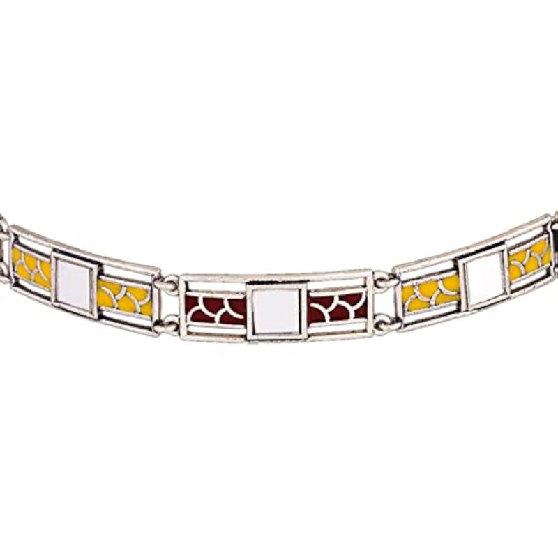 Make a bold fashion statement with the Rabaari Enameled Statement Necklace. This stunning piece features intricate enamel work and will add a pop of color to any outfit.