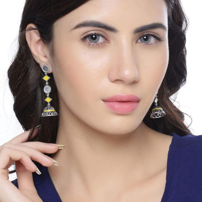Add a touch of effortless elegance to your look with these Rabaari long drop jhumka earrings, handcrafted from premium quality materials.