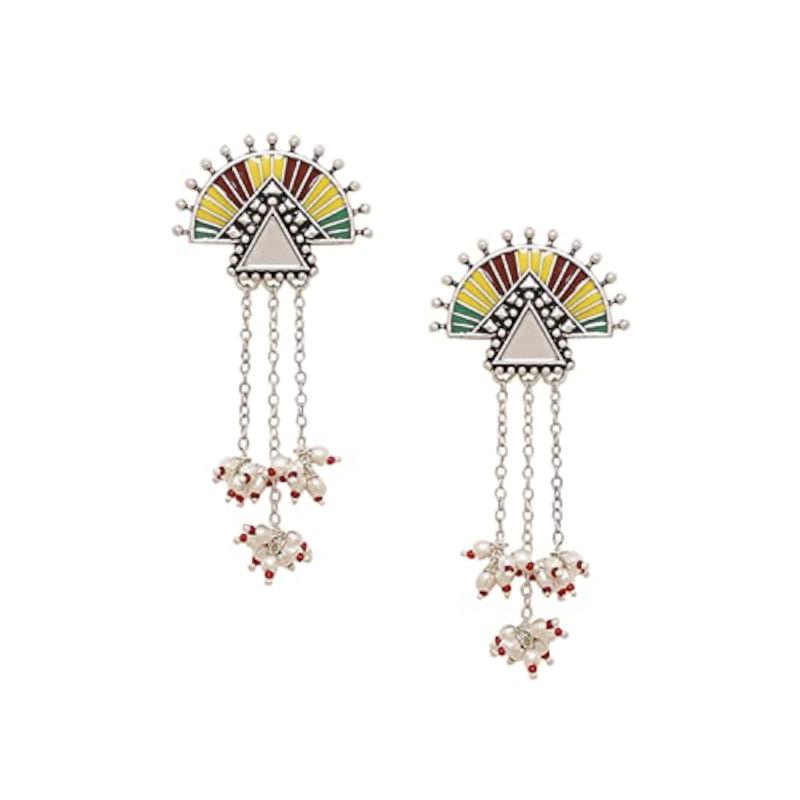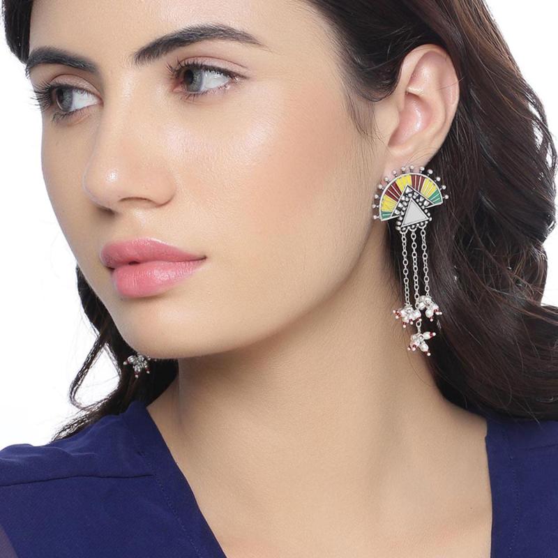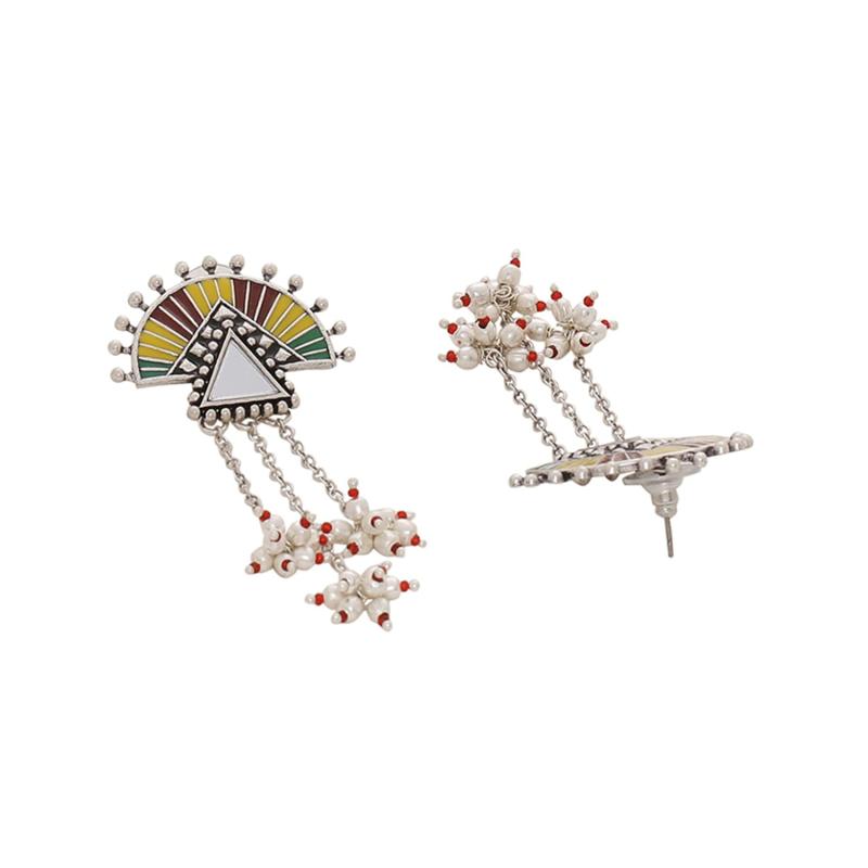 Elevate your style with these unique Rabaari earrings featuring an asymmetrical design and trendy tassels.
