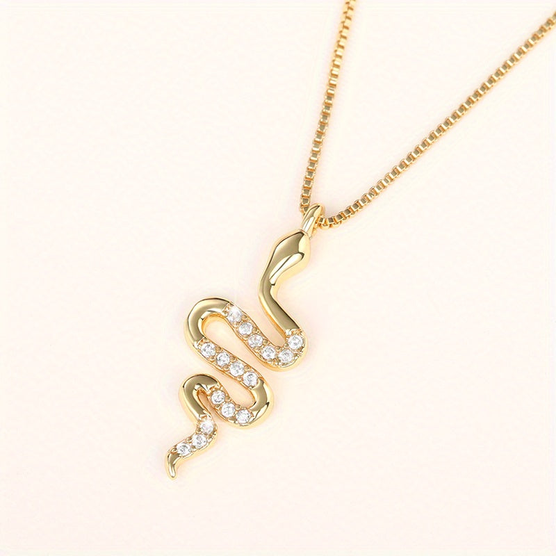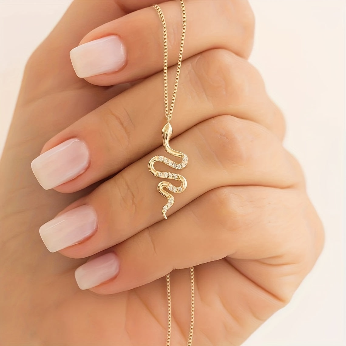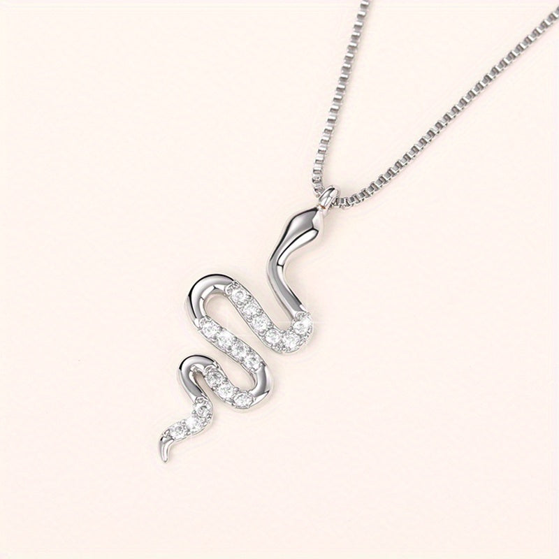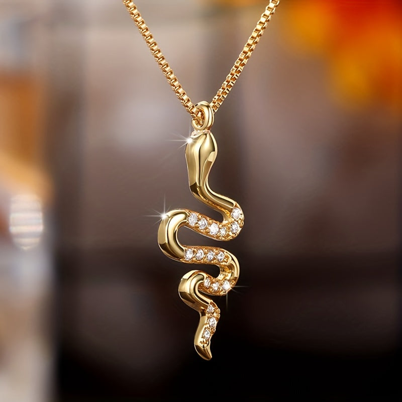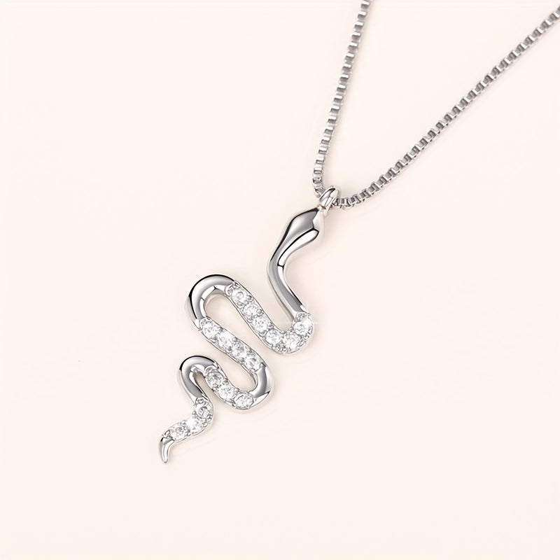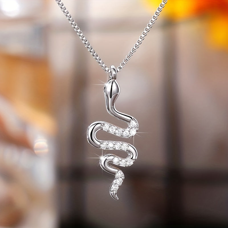 Elegant snake pendant necklace crafted in vintage style with zirconia accents. Perfect for daily wear and special occasions.