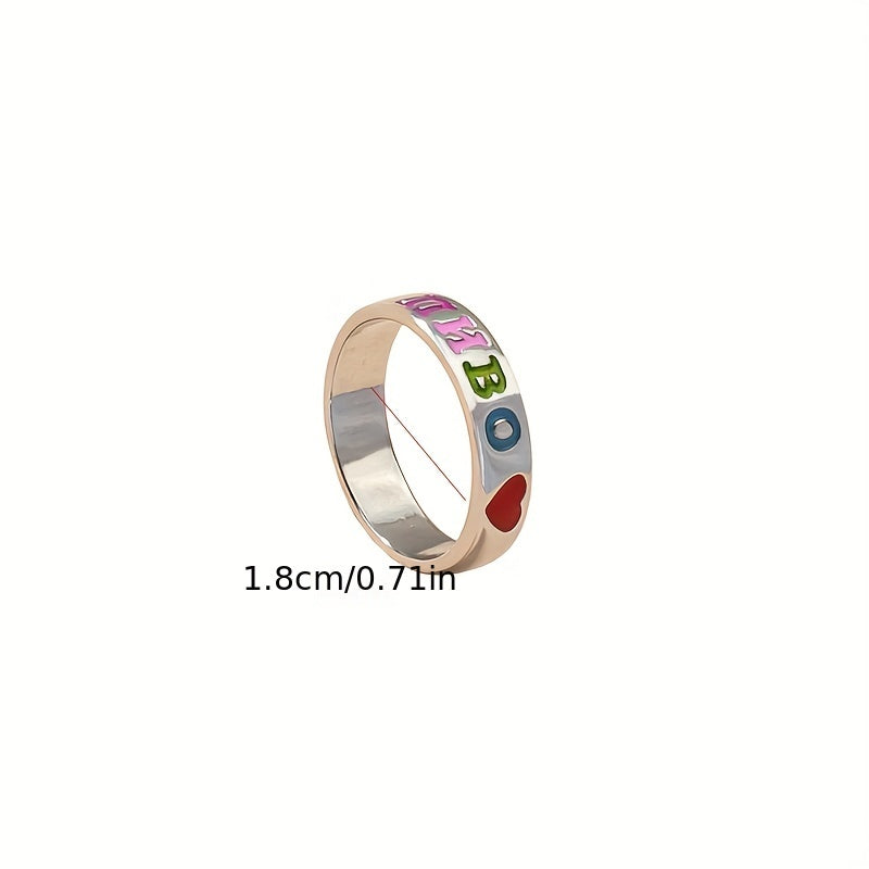This stunning oil dripping ring features a rainbow carved design with a red heart, making it a perfect gift for teen girls who love unique and stylish jewelry.