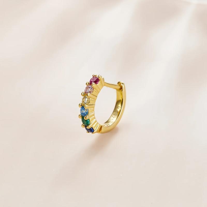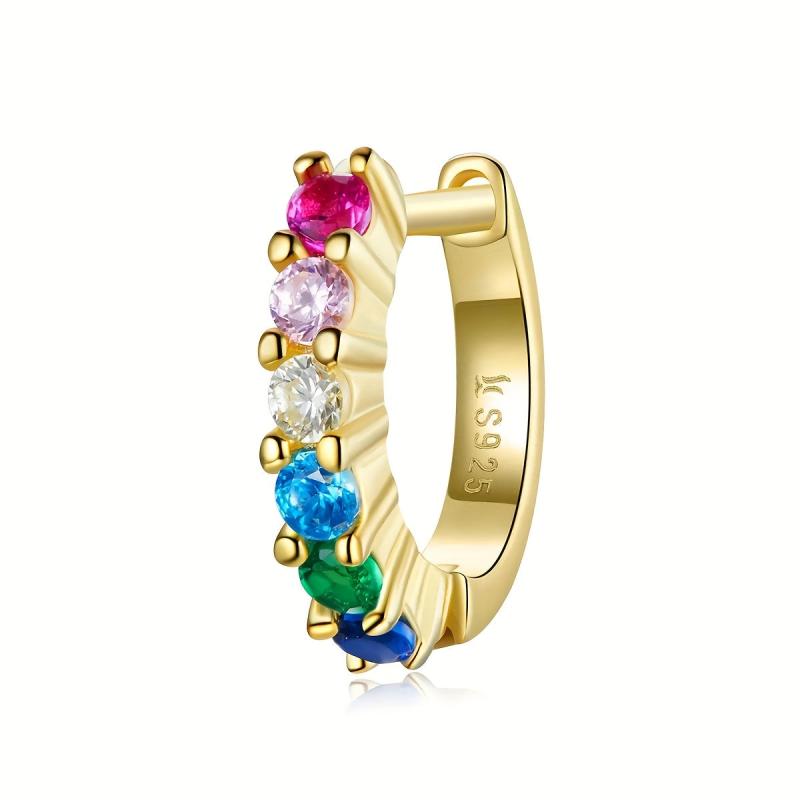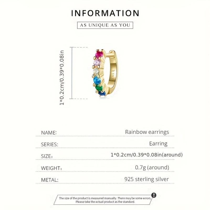 Add a pop of color to your outfit with these stunning rainbow colors zirconia earrings. Made with synthetic zirconia and 925 sterling silver, these earrings are perfect for any occasion.
