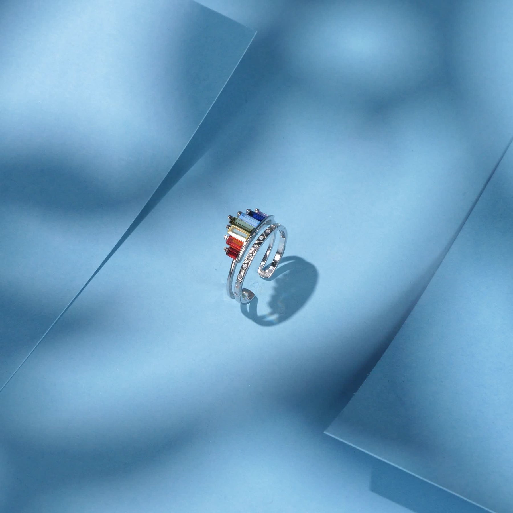 This stunning One Ring Women's Ring is made of pure silver and features a beautiful rainbow crown design. It is versatile for daily wear or party occasions.