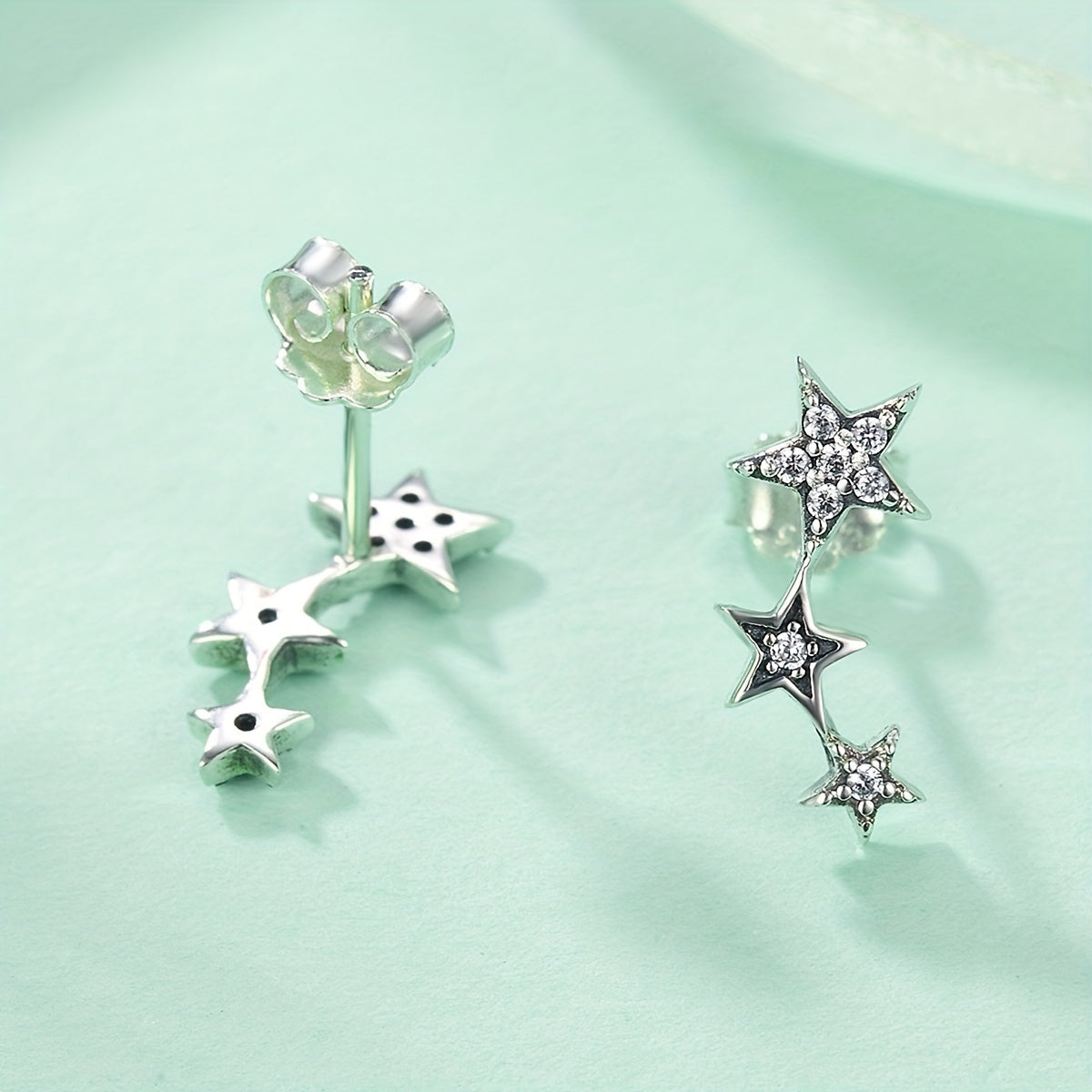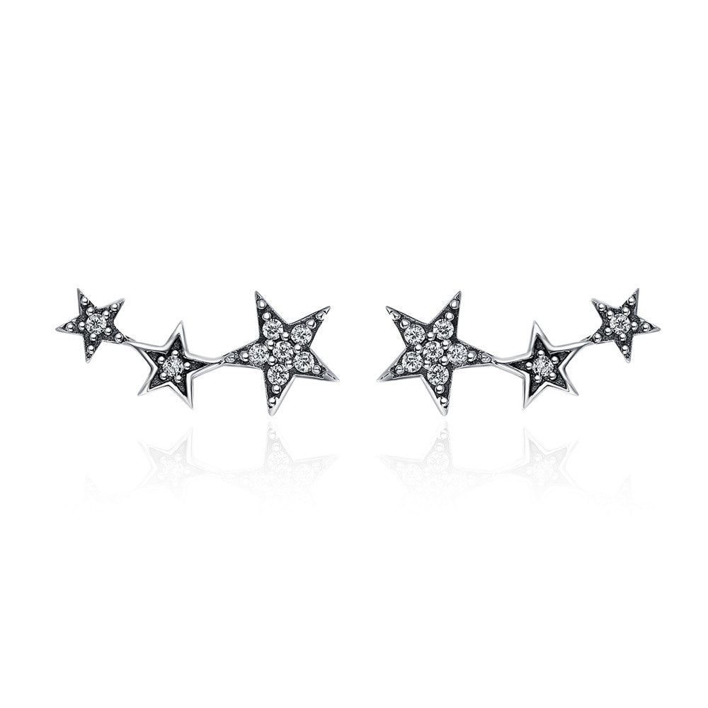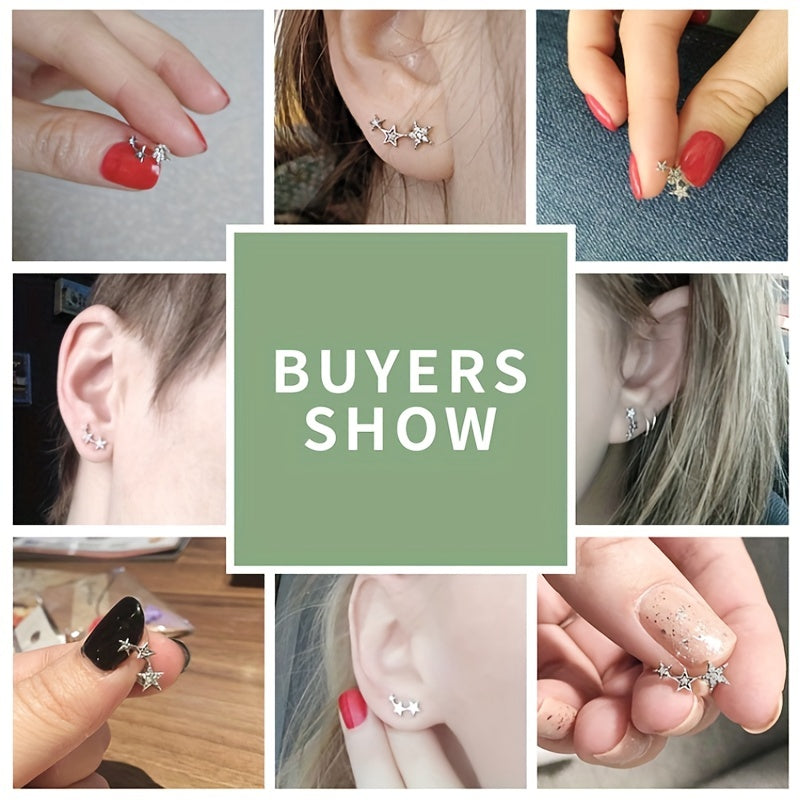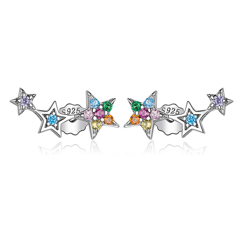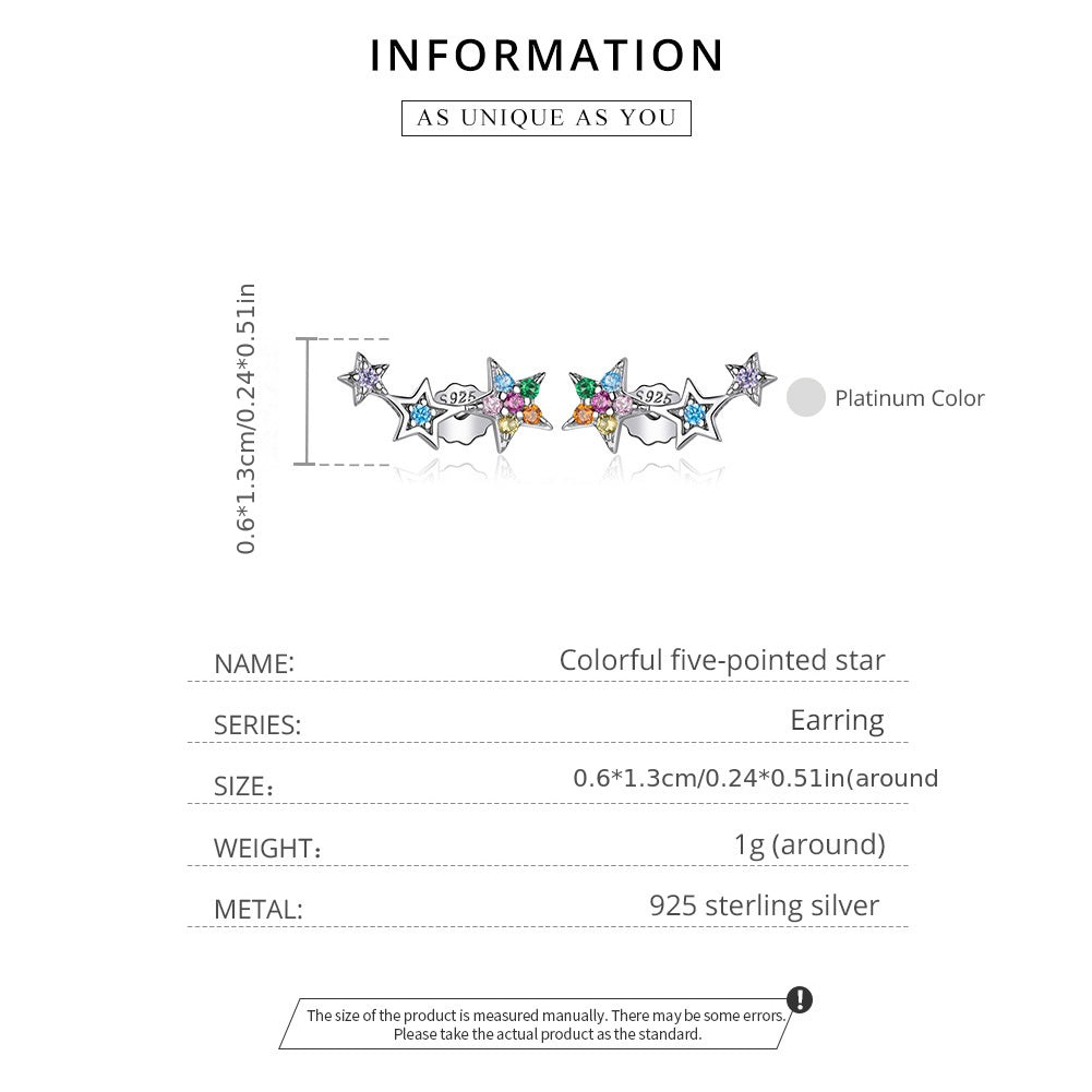 These stunning stud earrings feature multiple colorful crystals set in a five-pointed star design. Made from high-quality 925 sterling silver, these earrings are perfect for adding a touch of sparkle to any outfit.