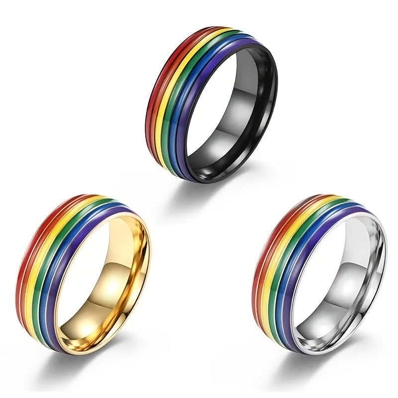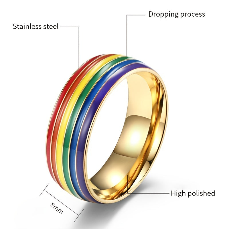 Rainbow Flag Homosexual Titanium Steel Ring 18K Golden Plated Lesbian Ring