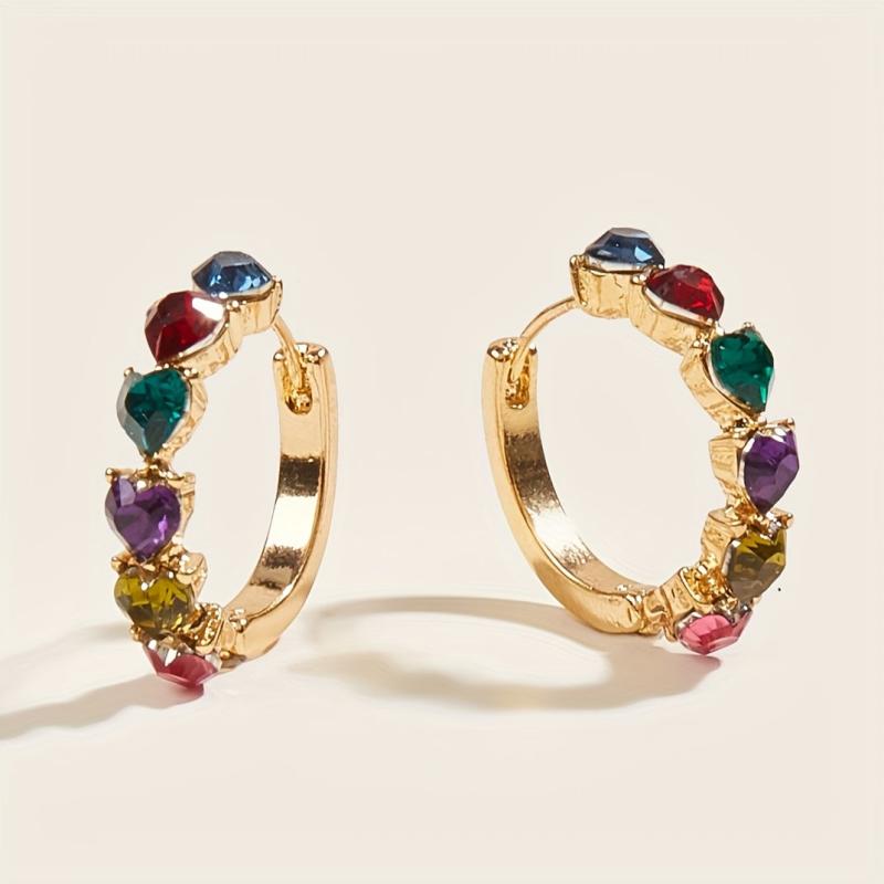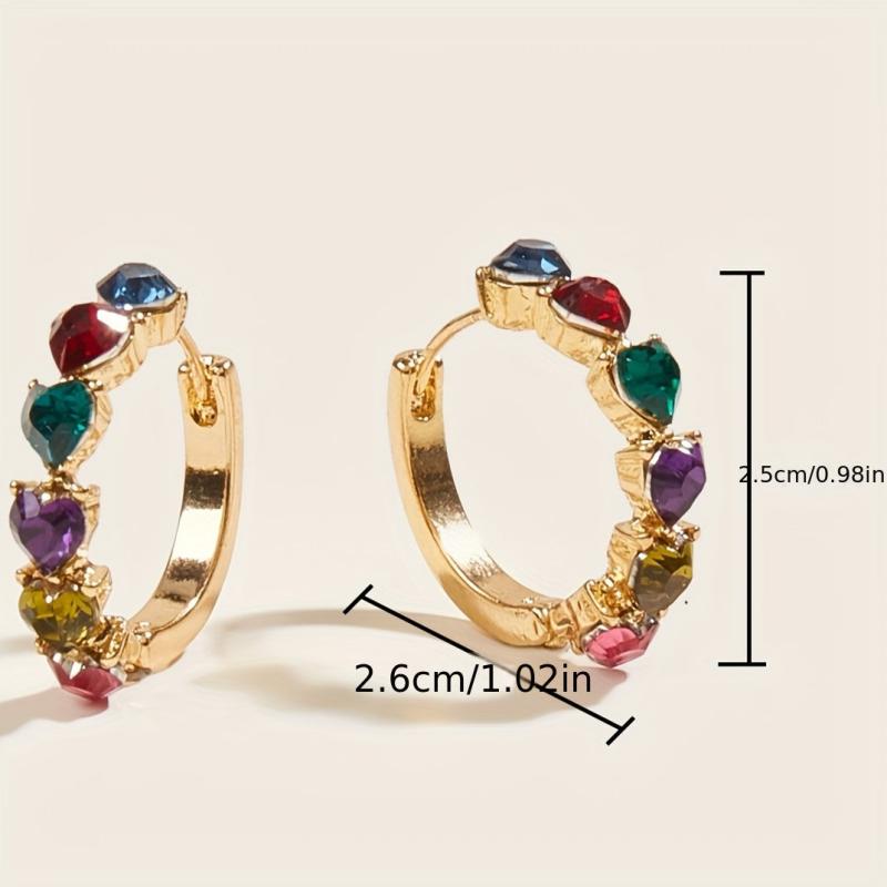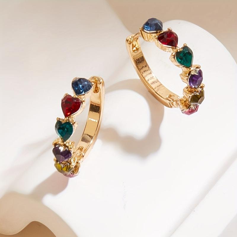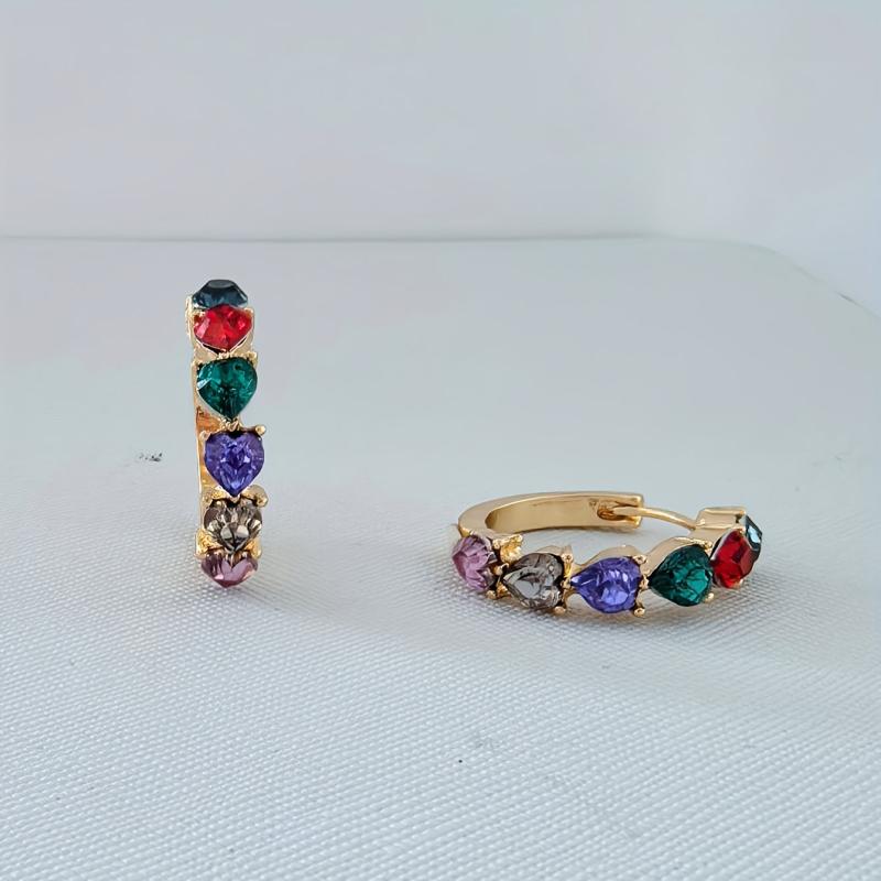 These vibrant multicolor gemstone earrings in a quirky heart shape are perfect for daily wear. The golden tone zinc alloy adds a touch of elegance to your outfit.