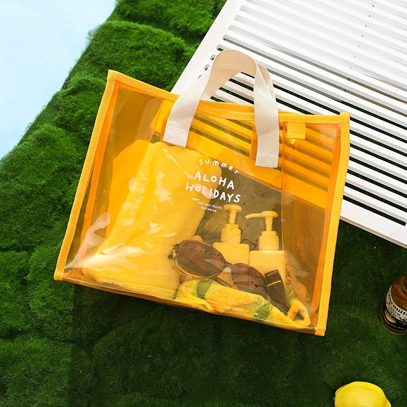 This holographic iridescent tote bag is perfect for stadium events, beach days, sports, work, travel, and parties. The large clear tote features a rainbow design that adds a fun and stylish touch to any outfit.