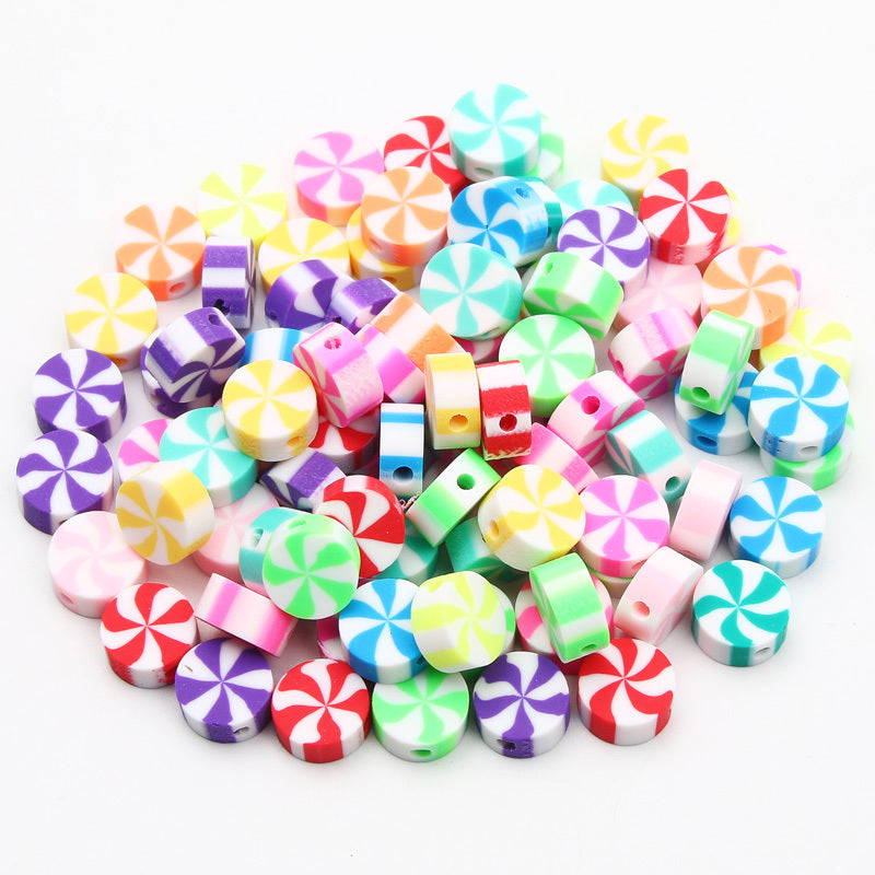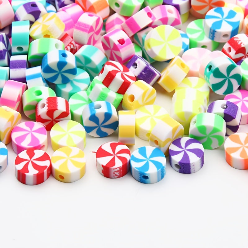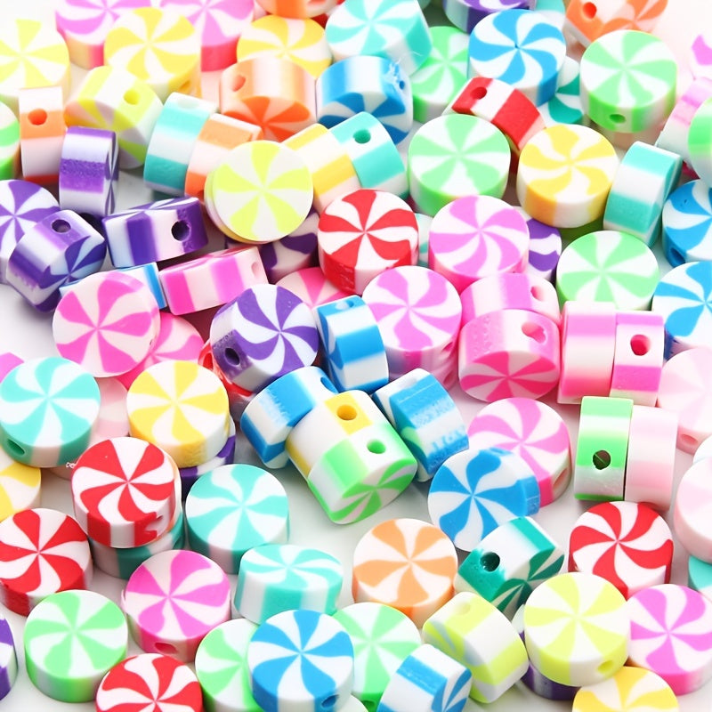 Create your own colorful jewelry with this DIY kit featuring soft clay beads in rainbow lollipop colors.