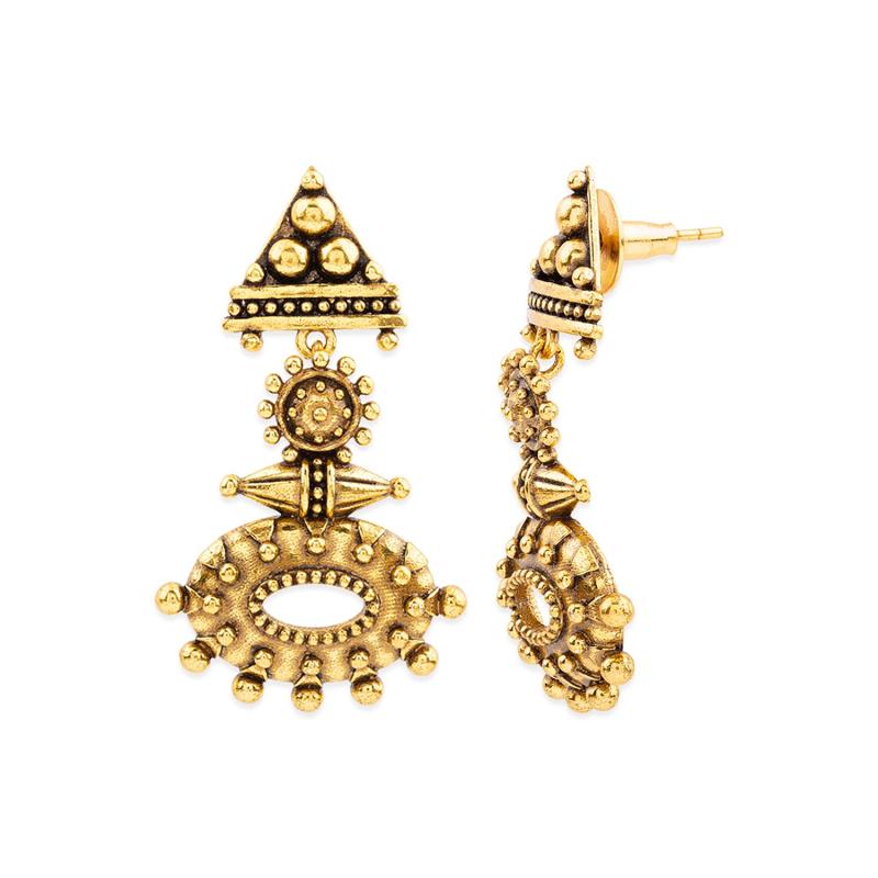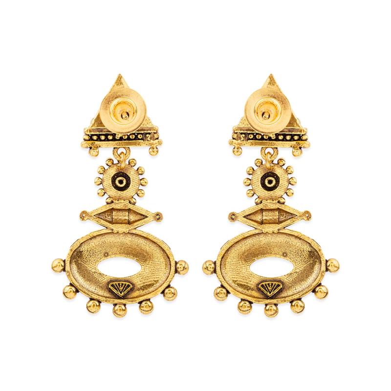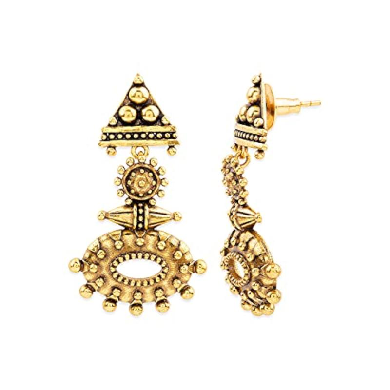 Add a touch of elegance to your look with these Rava Ball Oxidized Dangle Earrings. These earrings feature a unique design and are perfect for both casual and formal occasions.