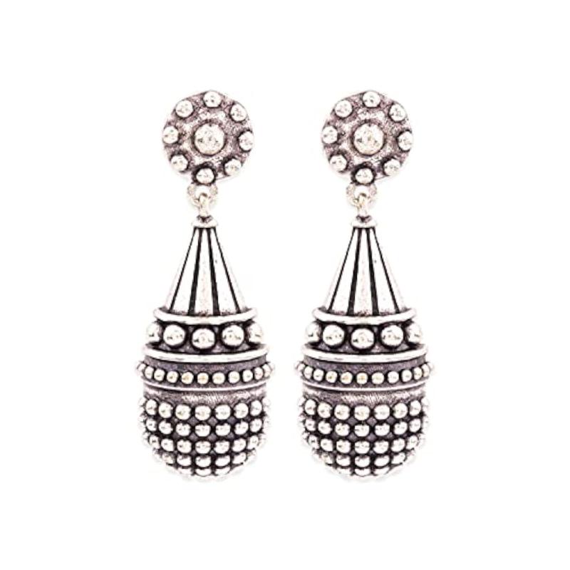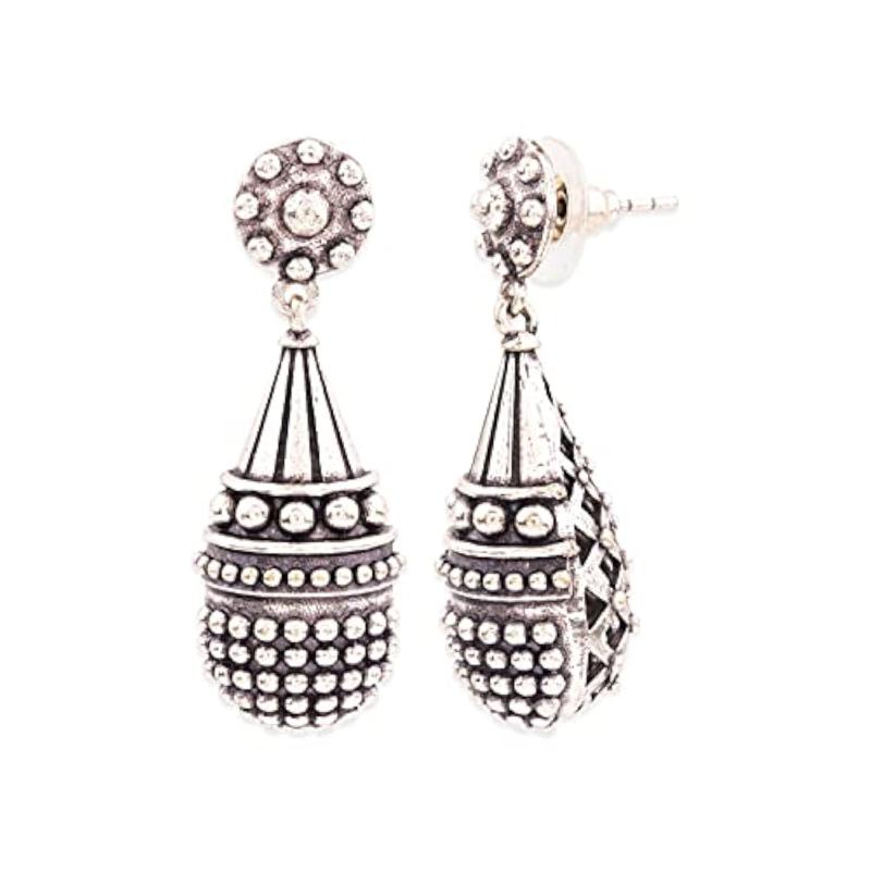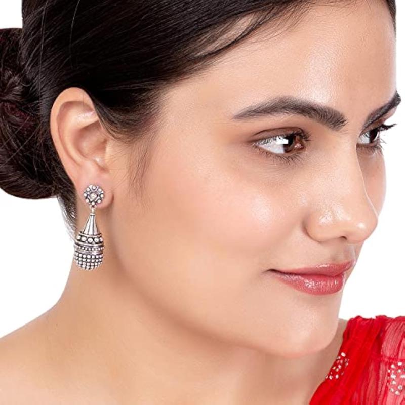 Add a touch of elegance to your outfit with these beautifully handcrafted Rava Ball Oxidized Drop Earrings. Perfect for adding a traditional Indian touch to your look.