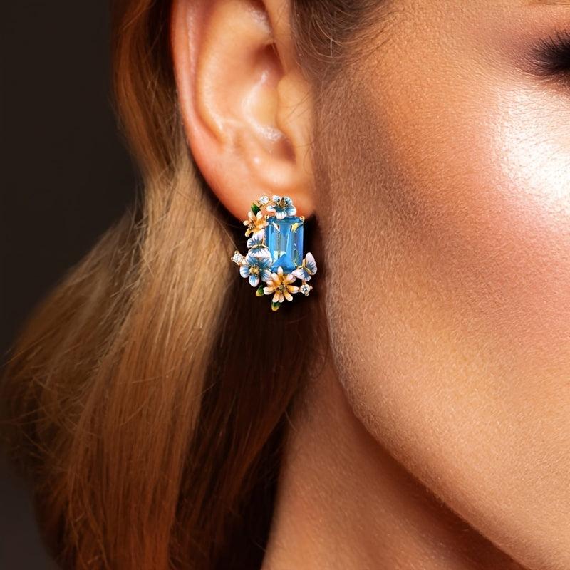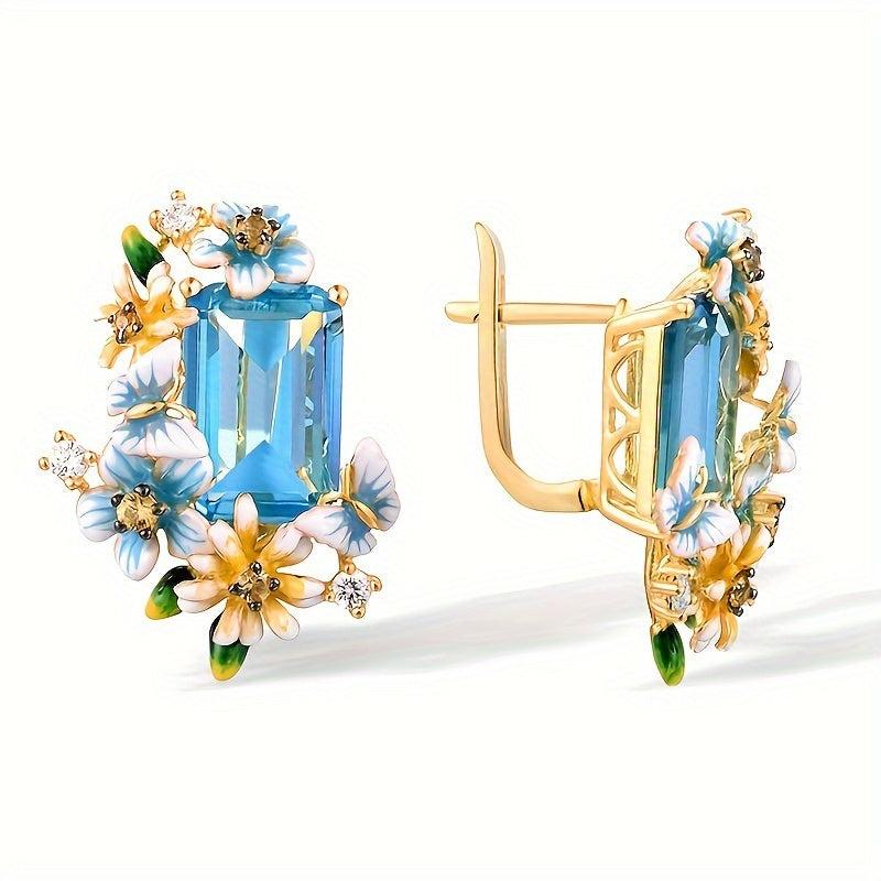 READKISS Boho Floral Butterfly Hoop Earrings CZ Golden Plated Copper