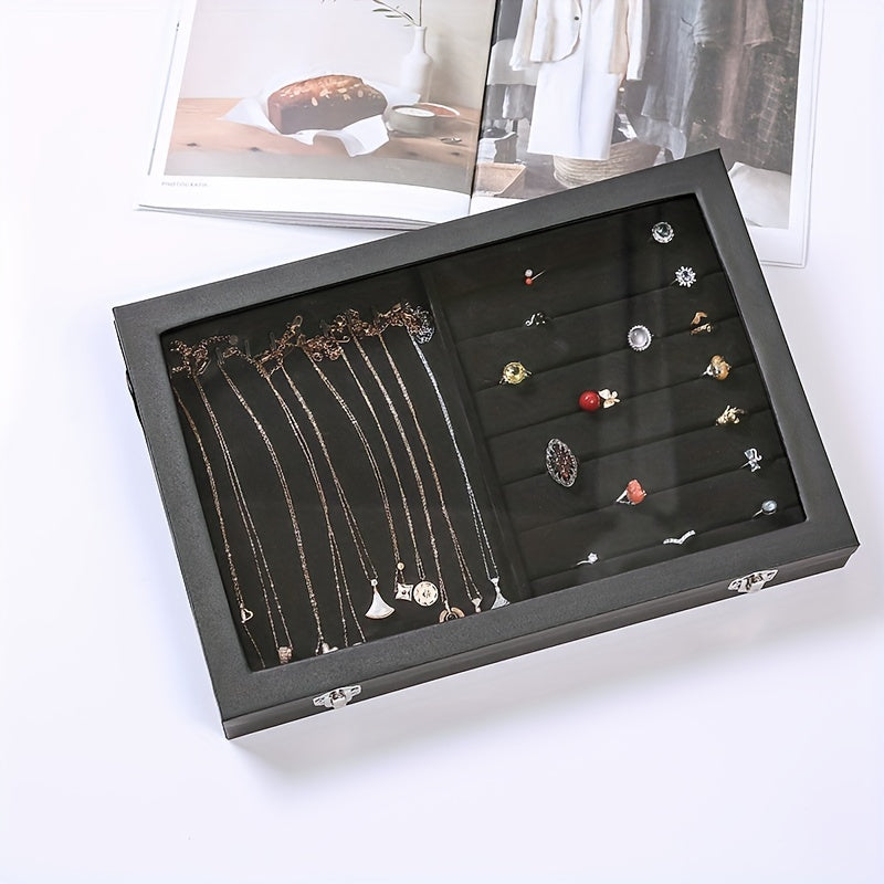 Keep your jewelry organized in this classic rectangular storage box. Perfect for storing earrings, necklaces, bracelets, and rings.
