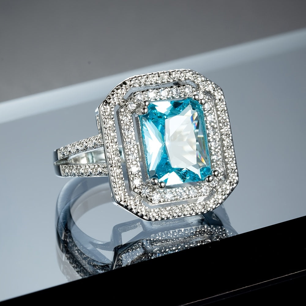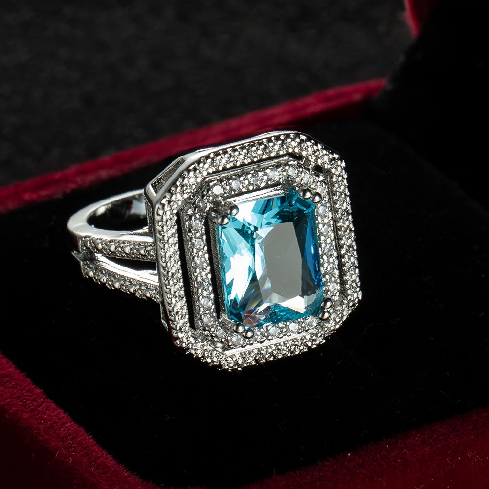 This elegant men's ring features a rectangular design with a light ocean style, perfect for wedding parties and special occasions.